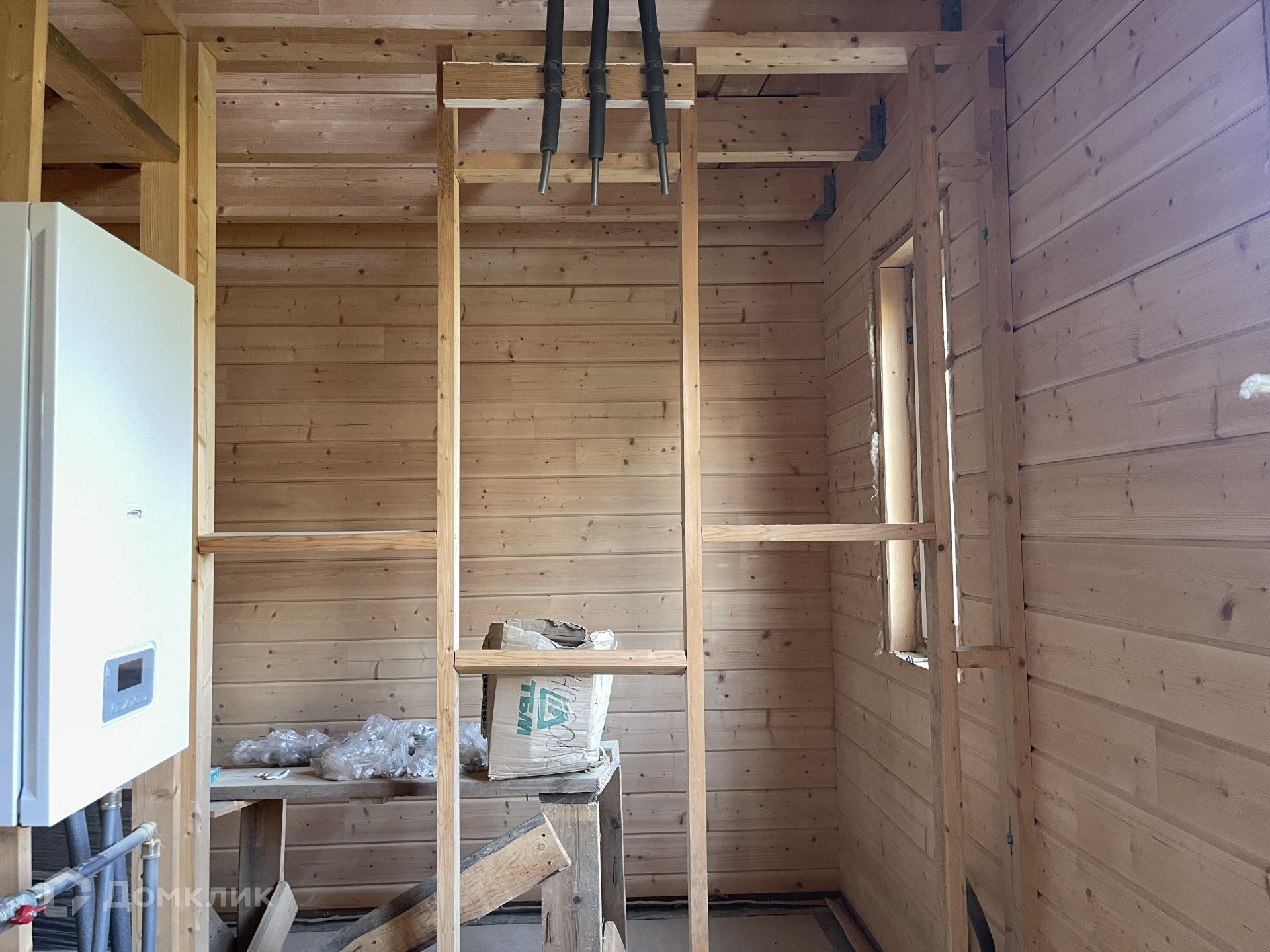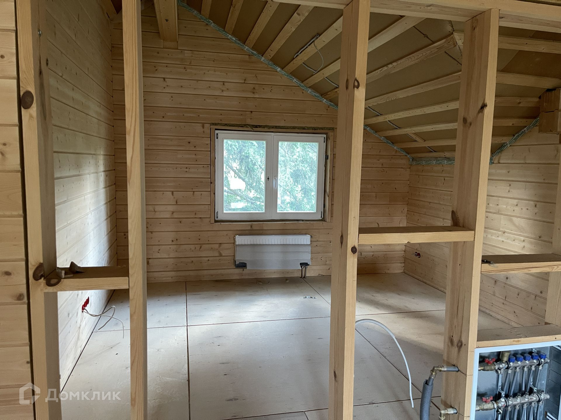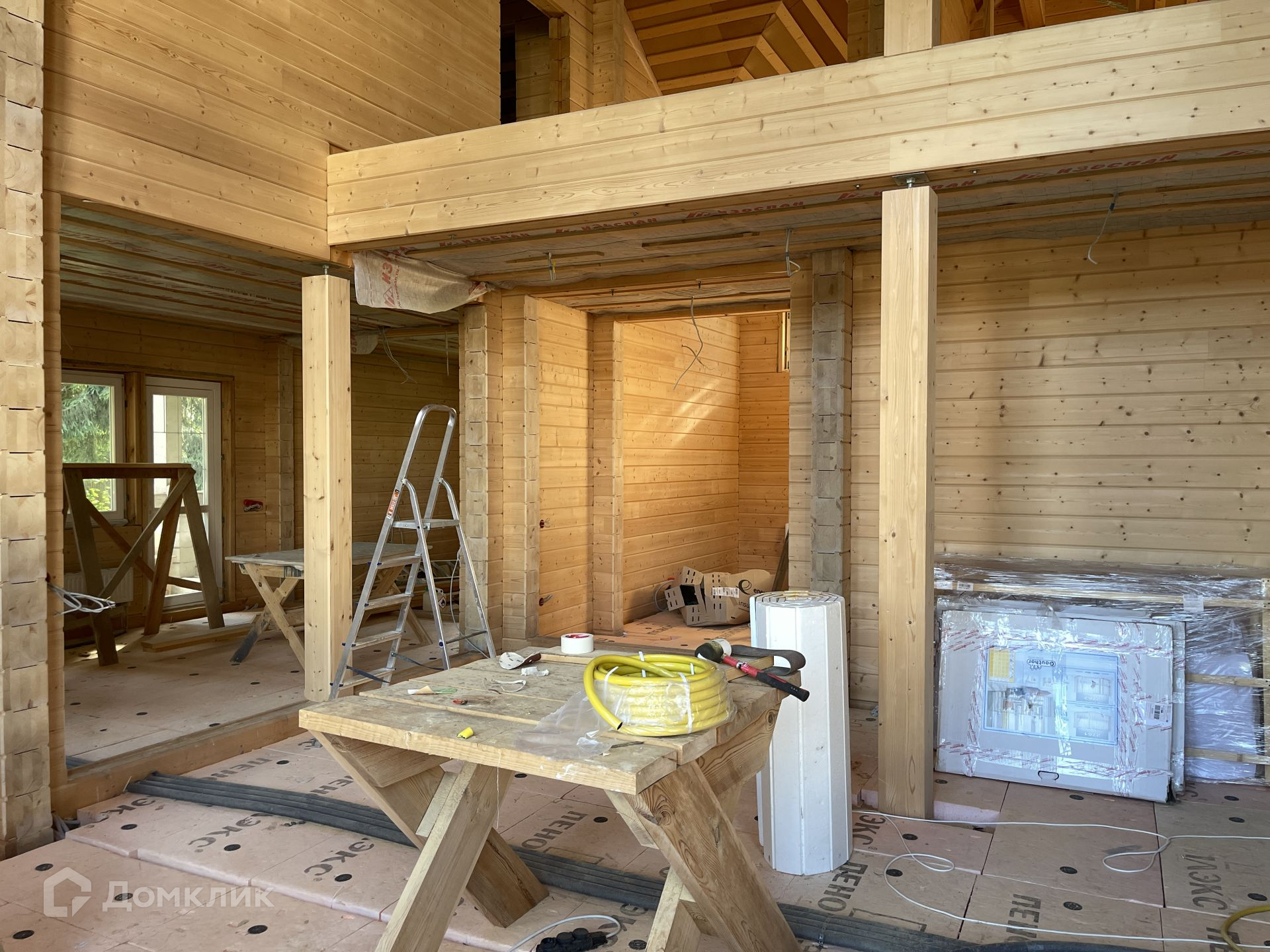 Дом под чистовую отделку. Вся инженерия готова: отопление, водоснабжение, электрика - всё разведено по дому. Дом отапливается электрическим котлом 28 кВт. Перекрытие второго этажа под чистовой пол, весь брус отшлифован под покраску.