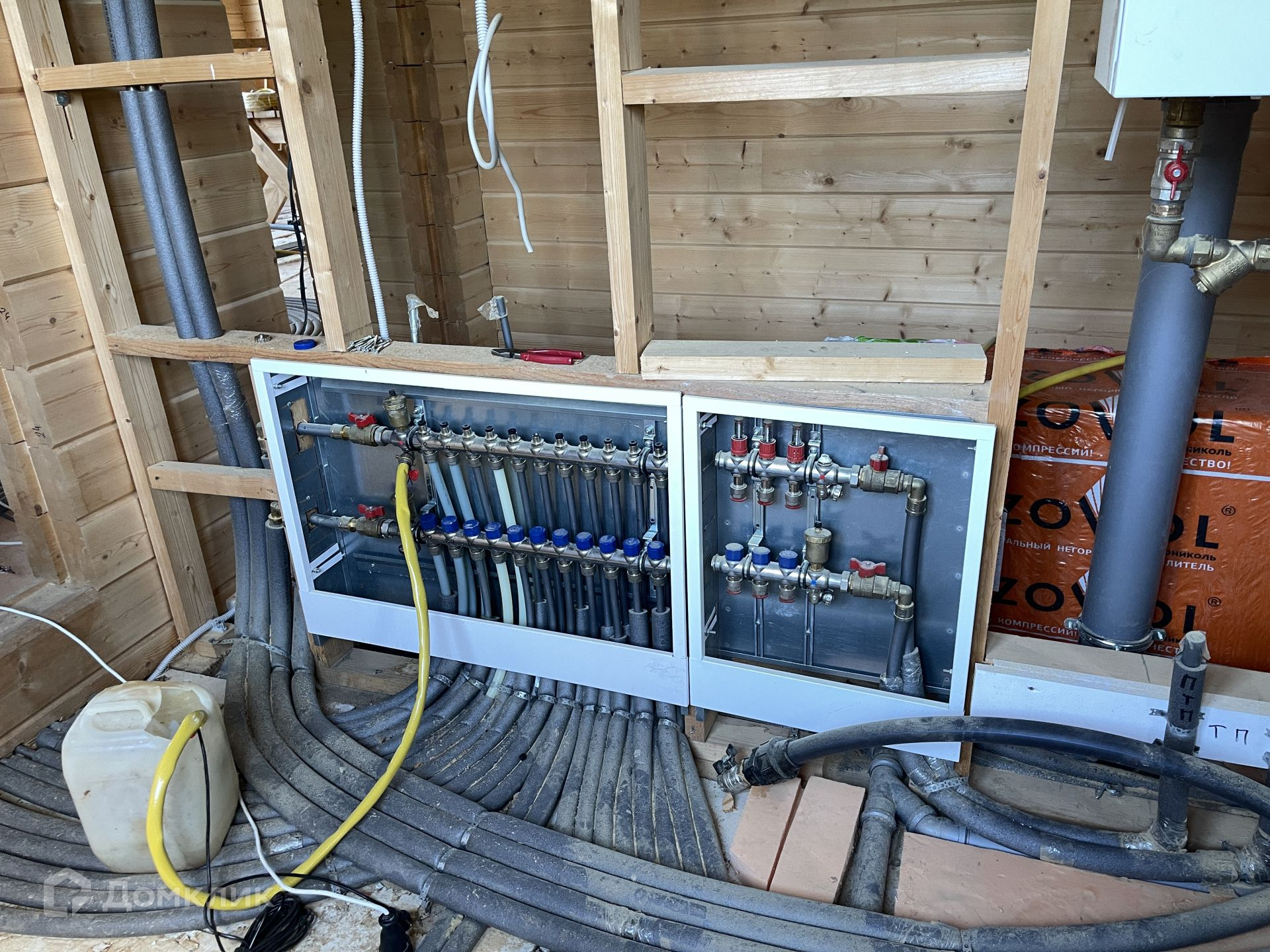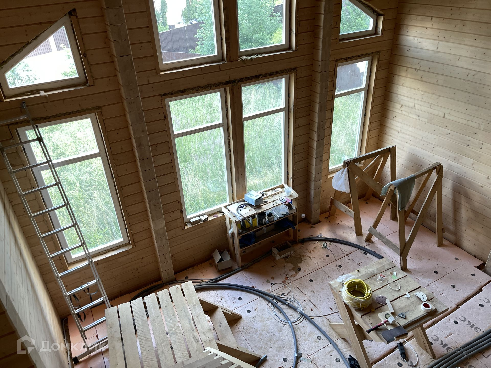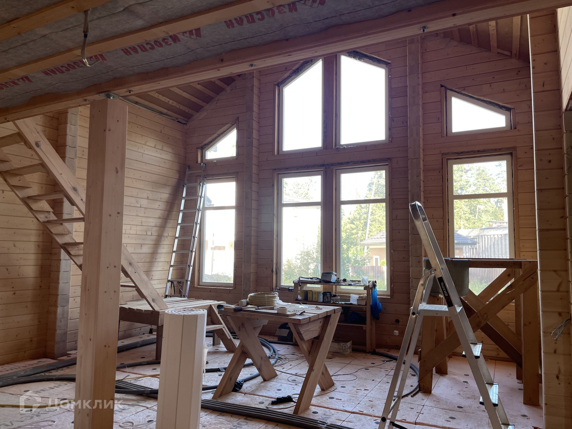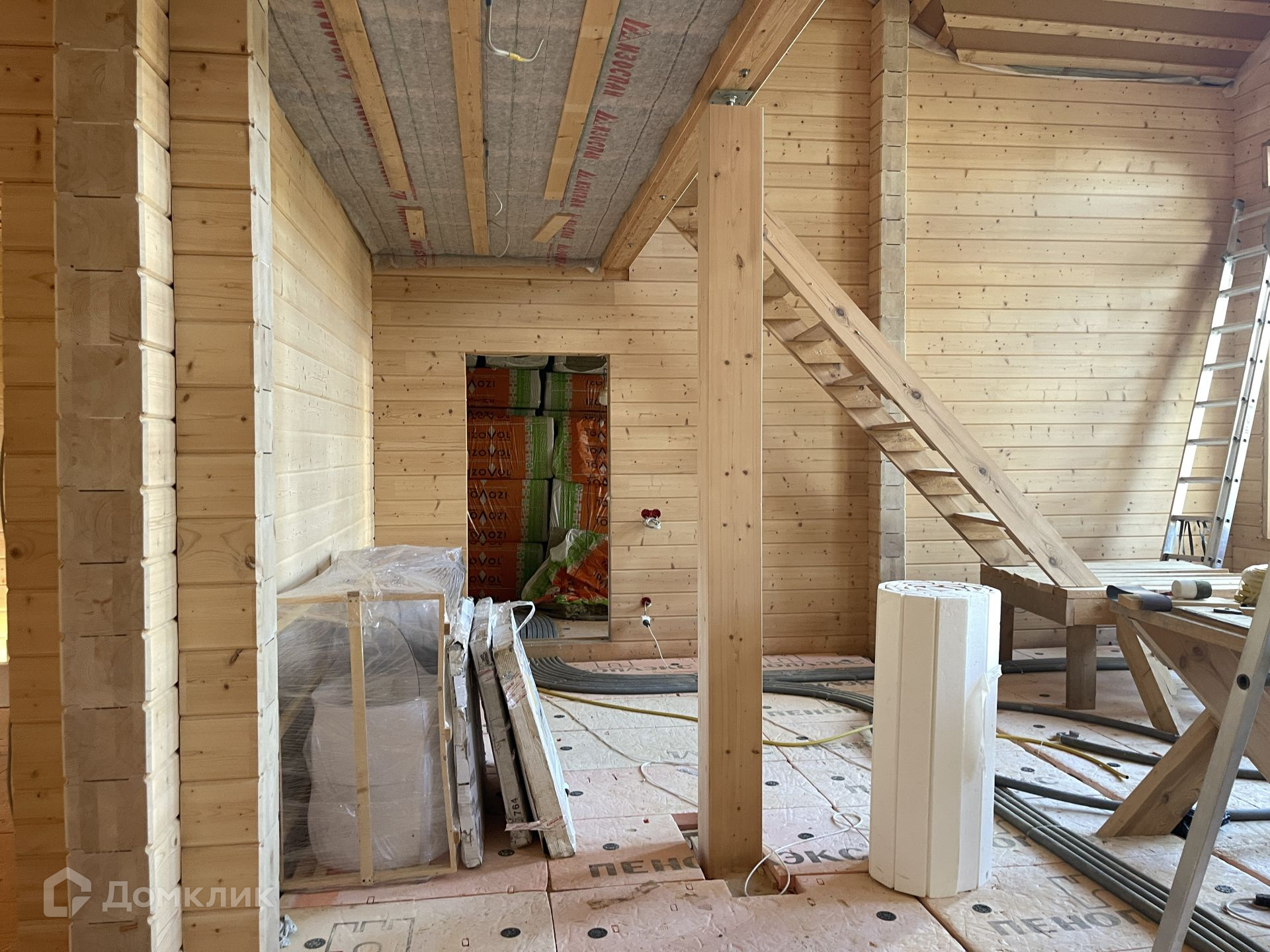 Дом под чистовую отделку. Вся инженерия готова: отопление, водоснабжение, электрика - всё разведено по дому. Дом отапливается электрическим котлом 28 кВт. Перекрытие второго этажа под чистовой пол, весь брус отшлифован под покраску.