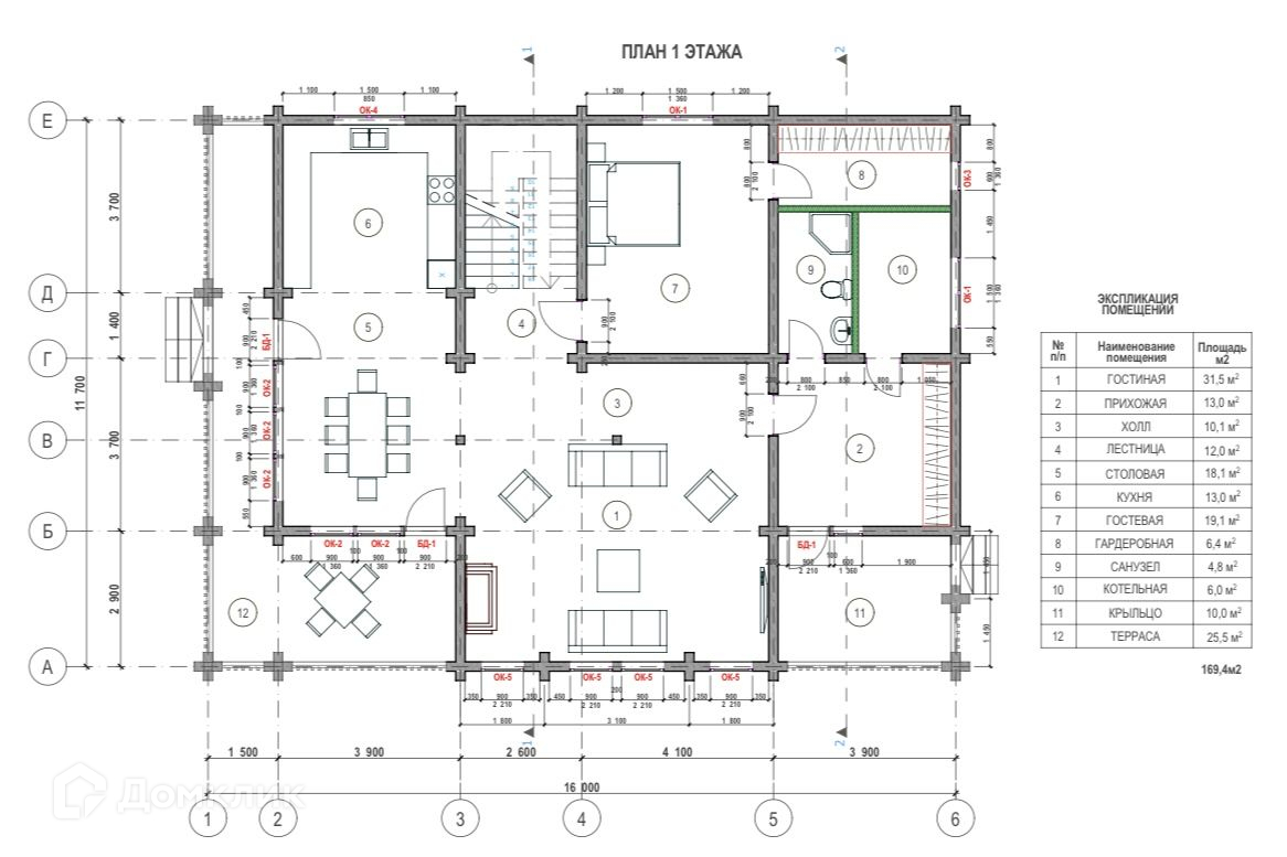 На 1 этаже расположены: