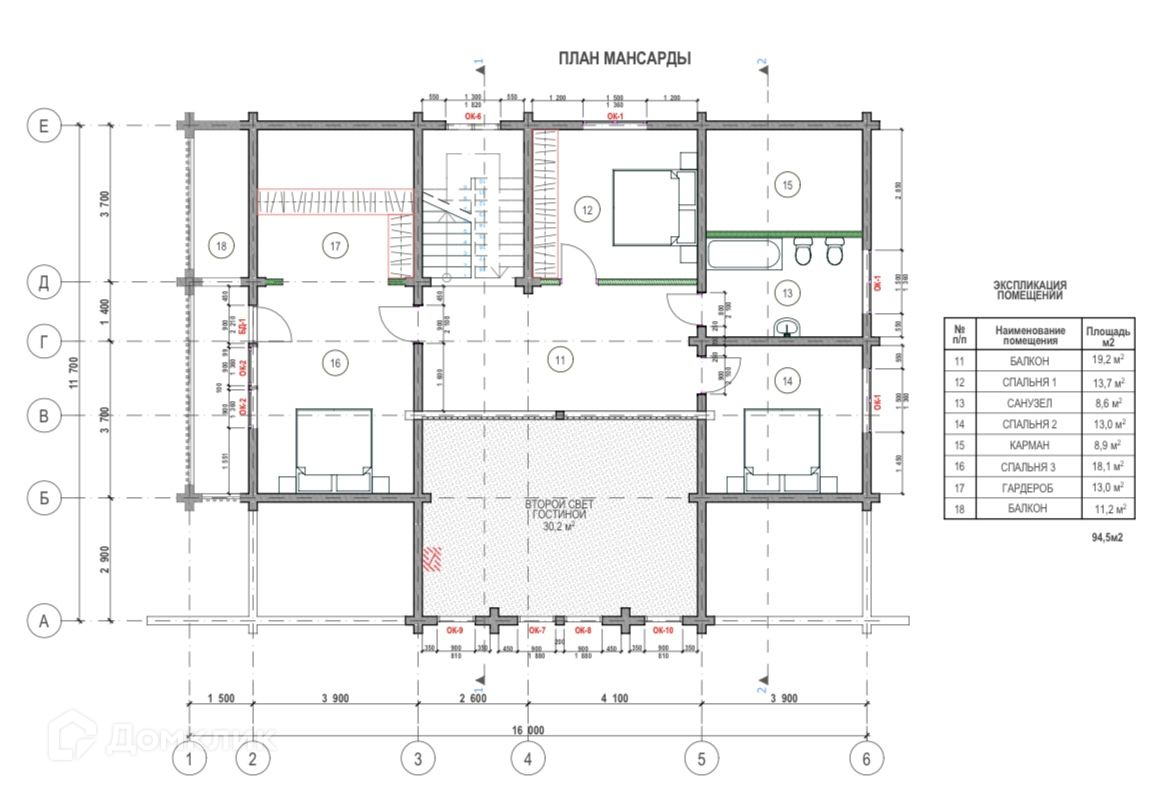 На втором этаже: мастер-спальня с гардеробной, балконом, две детские комнаты, холл со вторым светом и санузел.