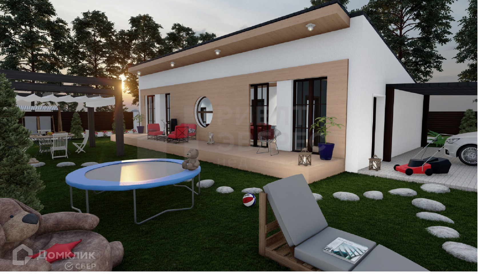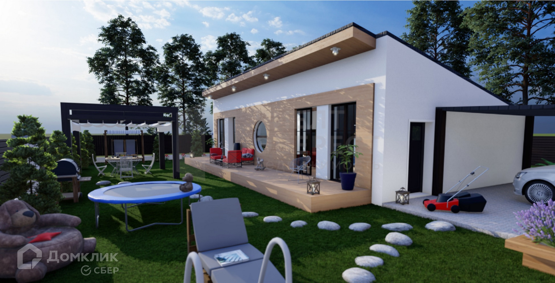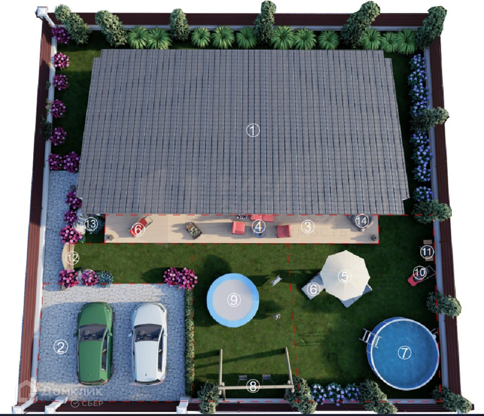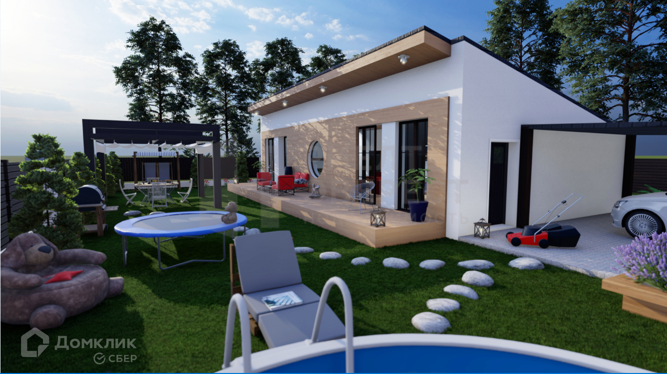 На участке, рядом с домом можно оборудовать беседку, бассейн, игровую площадку, зону барбекю, стоянку под две машины.