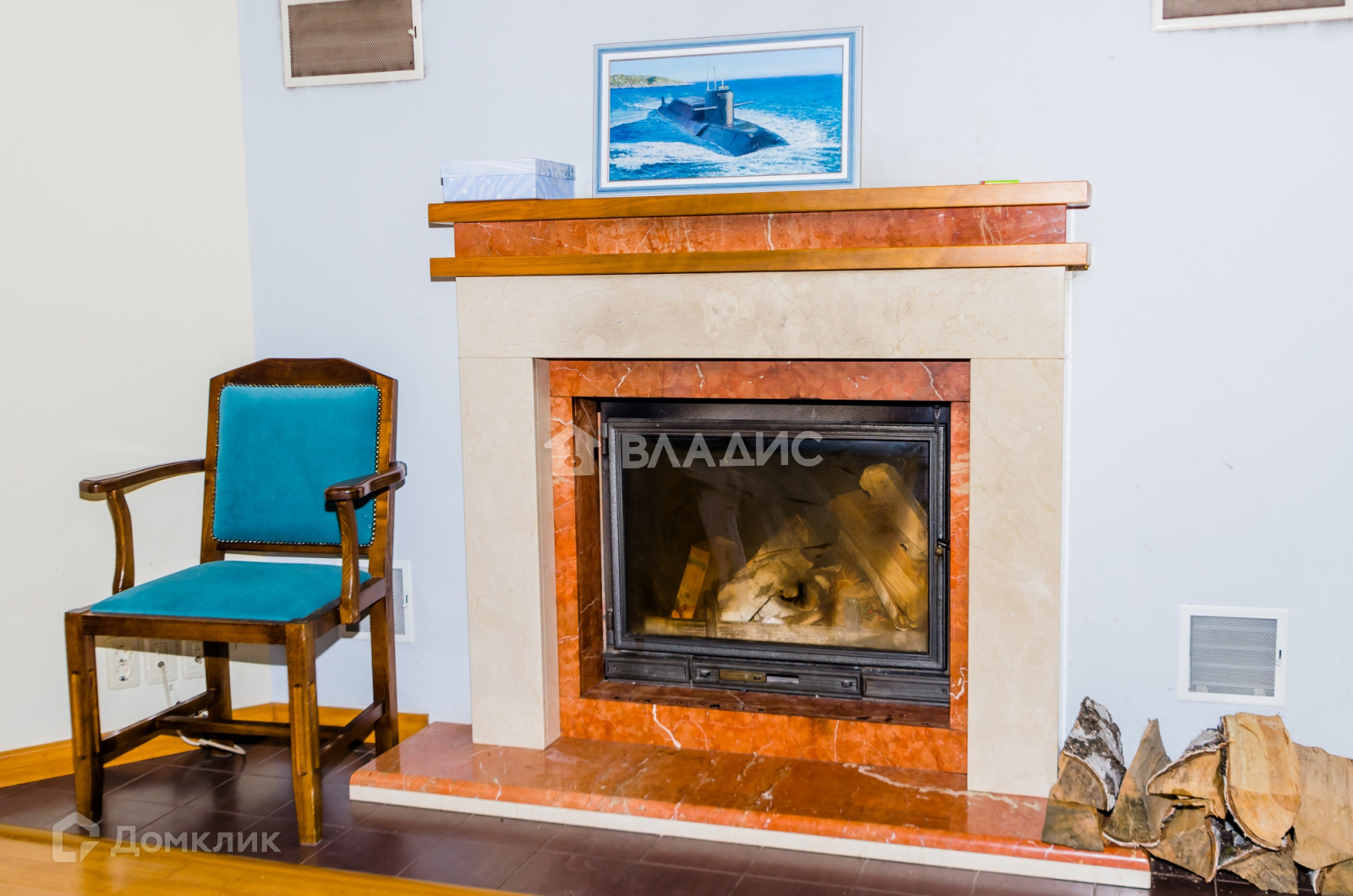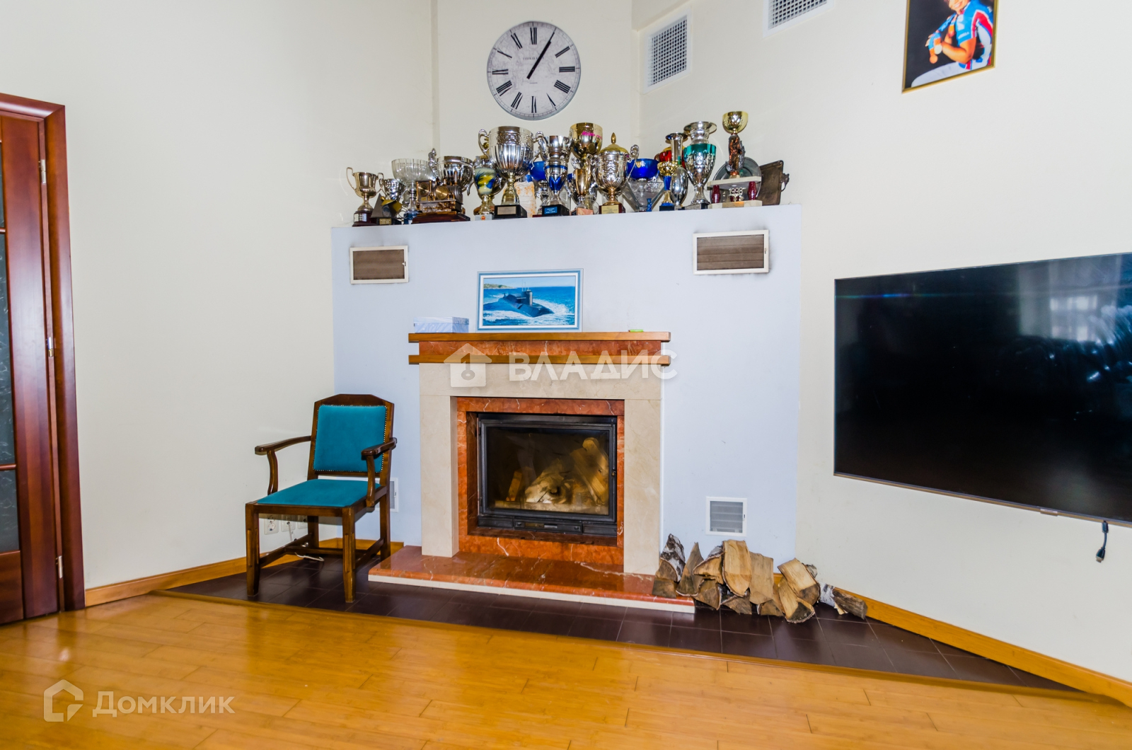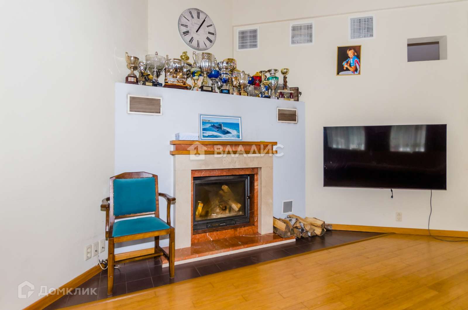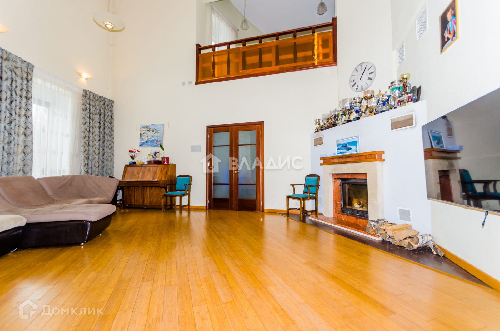 Большая гостиная с настоящим камином и вторым светом.