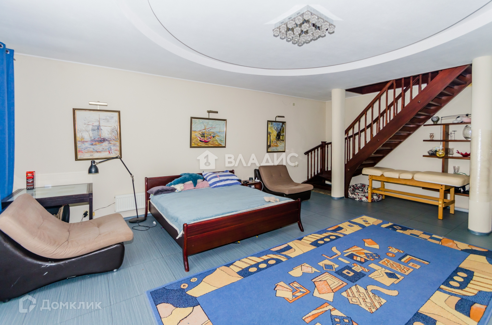 Просторный холл с лестницы.