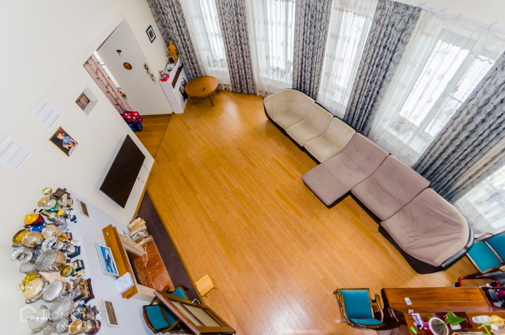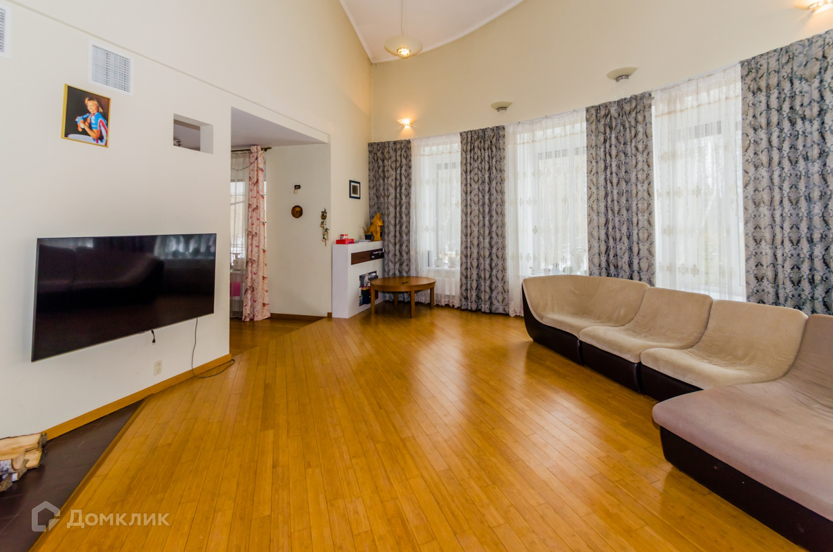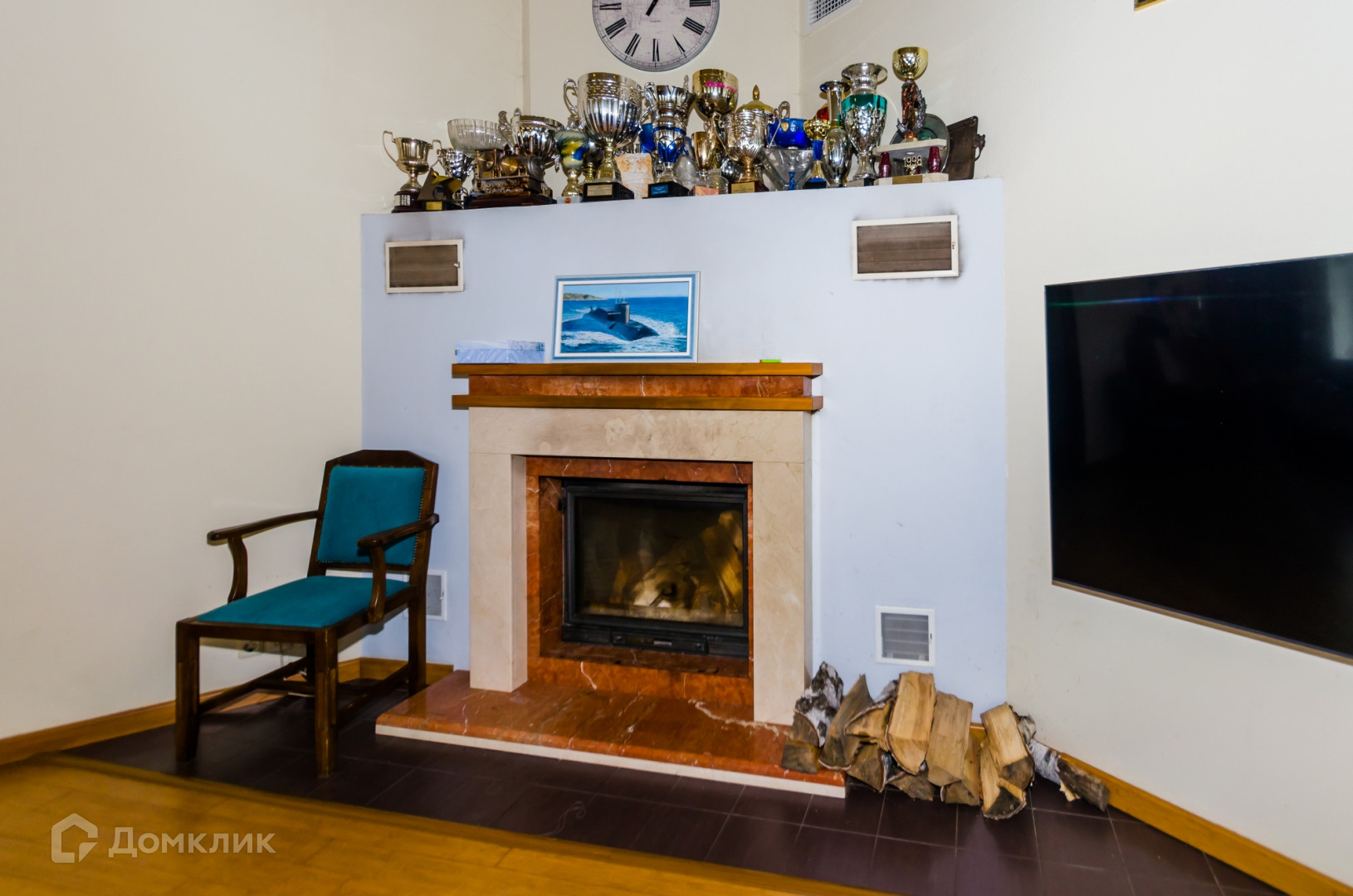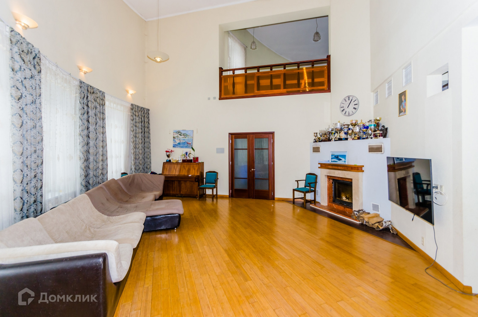 Большая гостиная с настоящим камином и вторым светом.