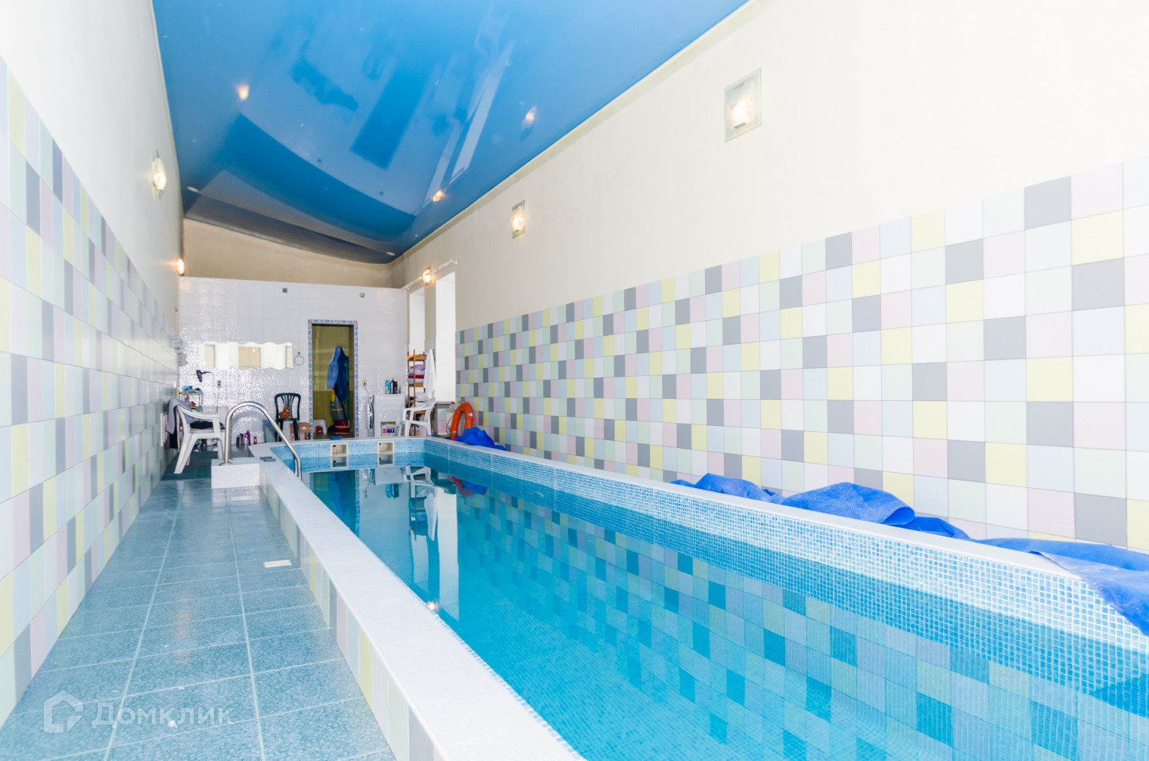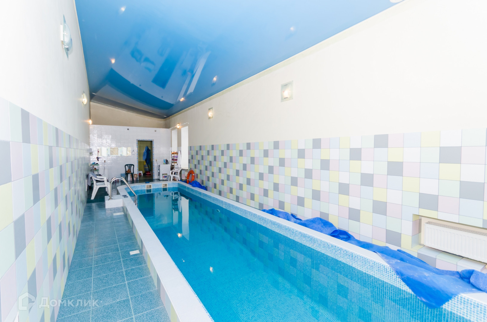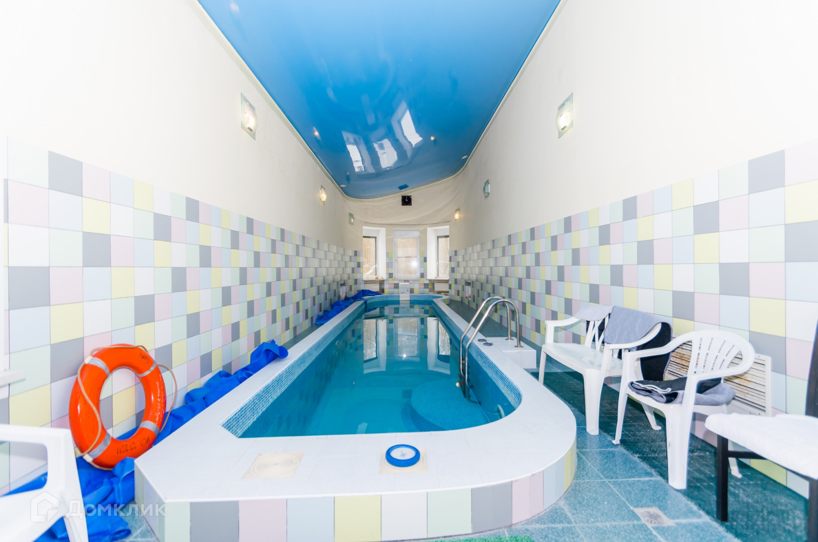 Большой бассейн с зоной отдыха и парной.