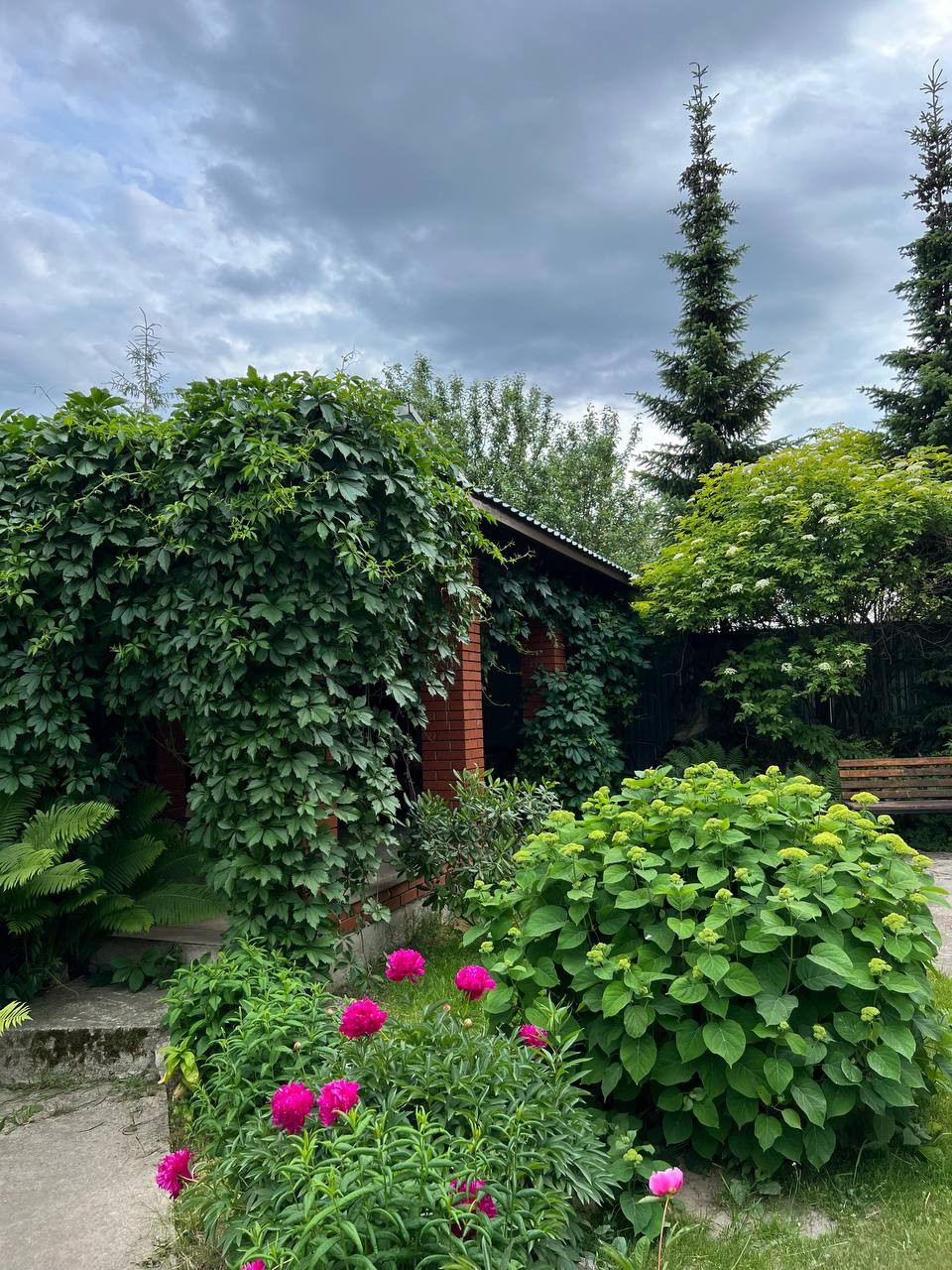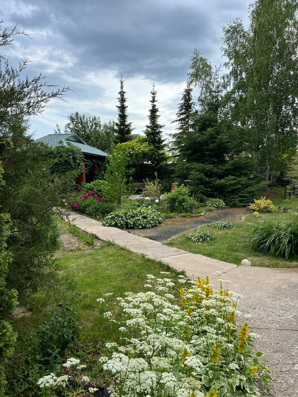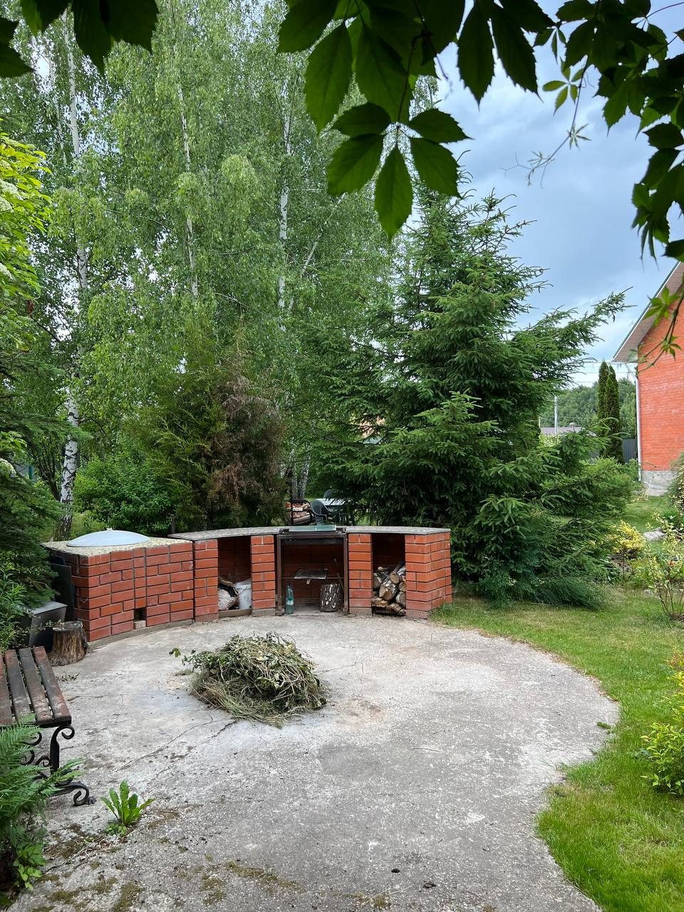 На участке имеется отдельная зона отдыха для барбекю, кирпичная беседка 3*12 м. с подведением электричества и место под установку каркасного бассейна. Также небольшой бассейн с карпами Кои.