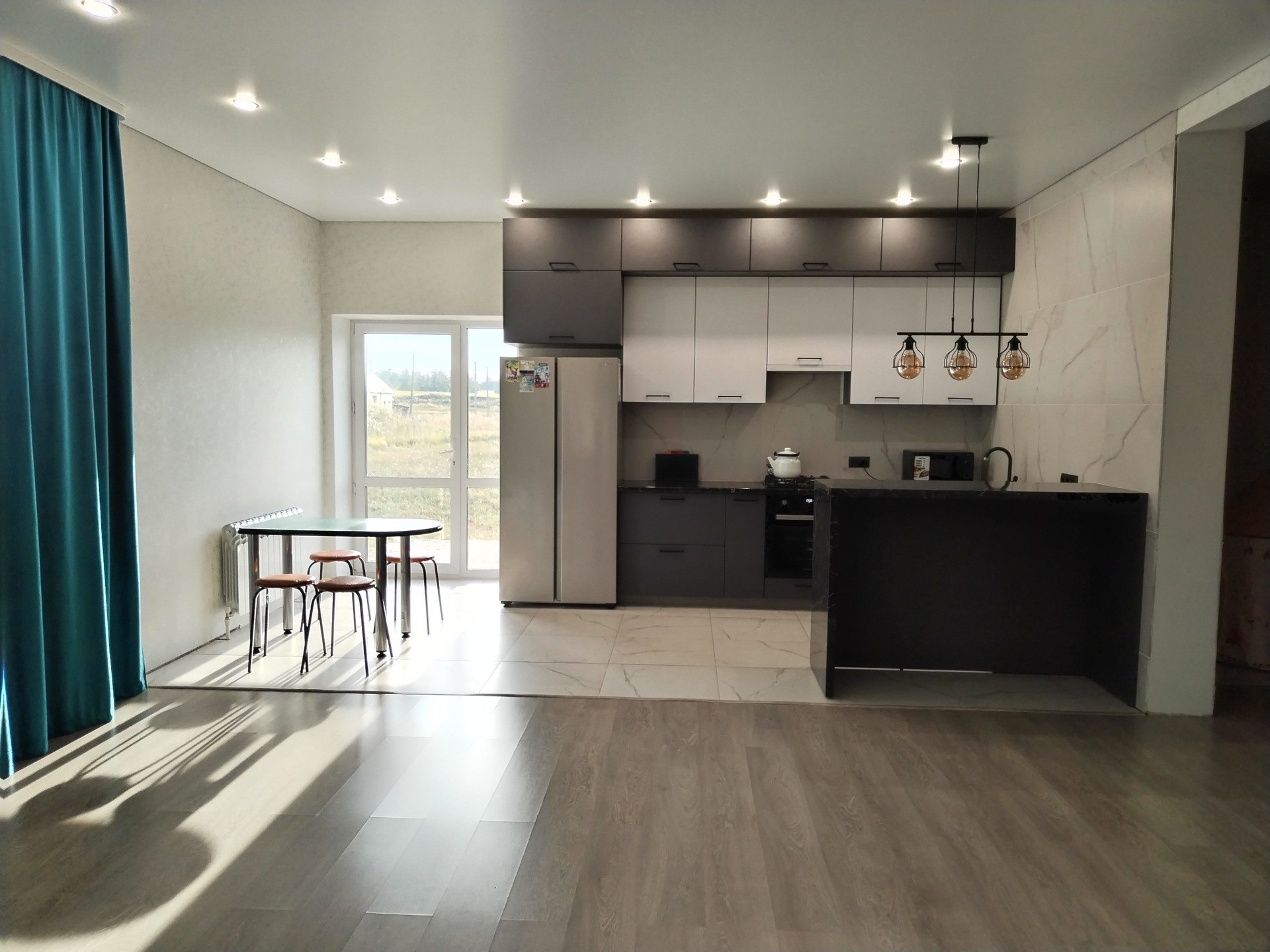 Полы ламинат, частично плитка. Кухонный гарнитур выполнен из качественных материалов.