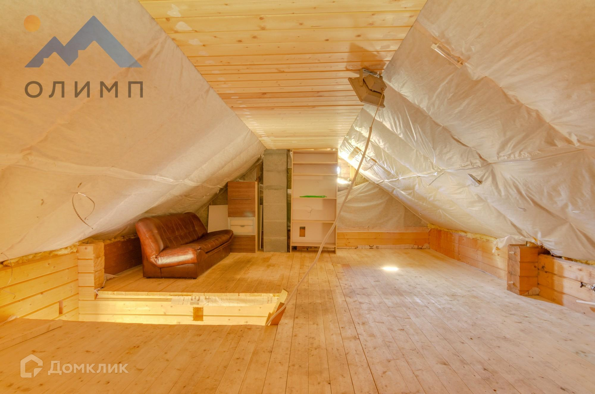 На втором этаже мансардное помещение.