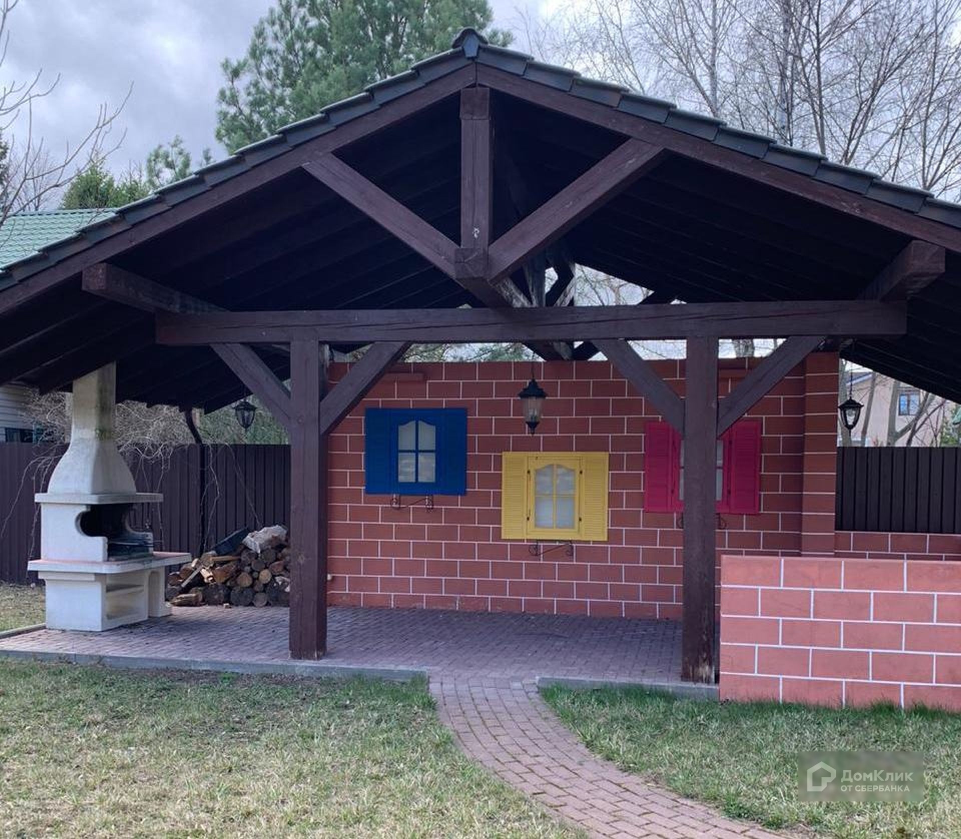 БЕЗ КОМИССИИ для покупателя. Лот 548879. Дом в охраняемом коттеджном поселке. На участке расположен дом для персонала, беседка с барбекю, площадка на 4 м/м.