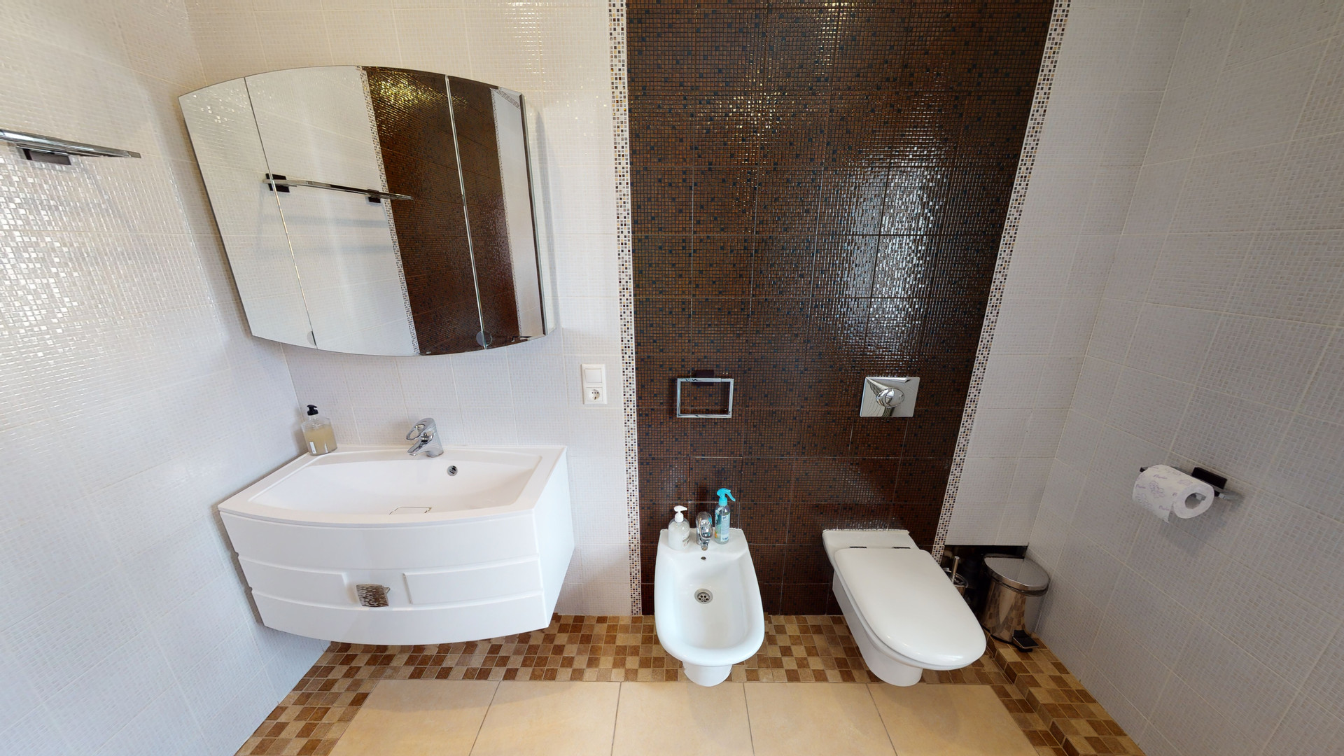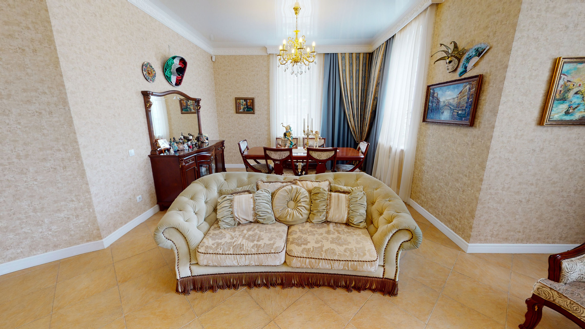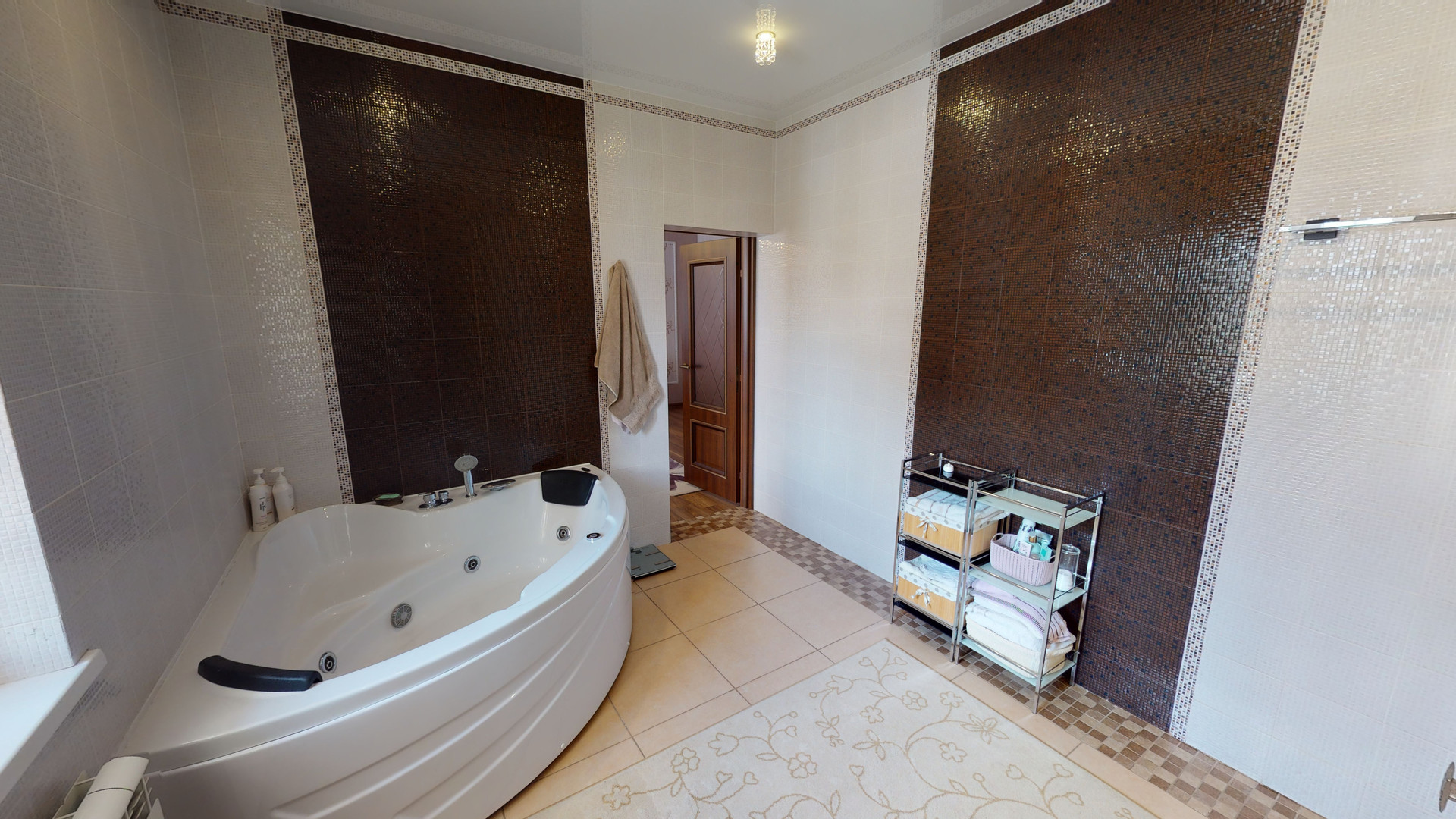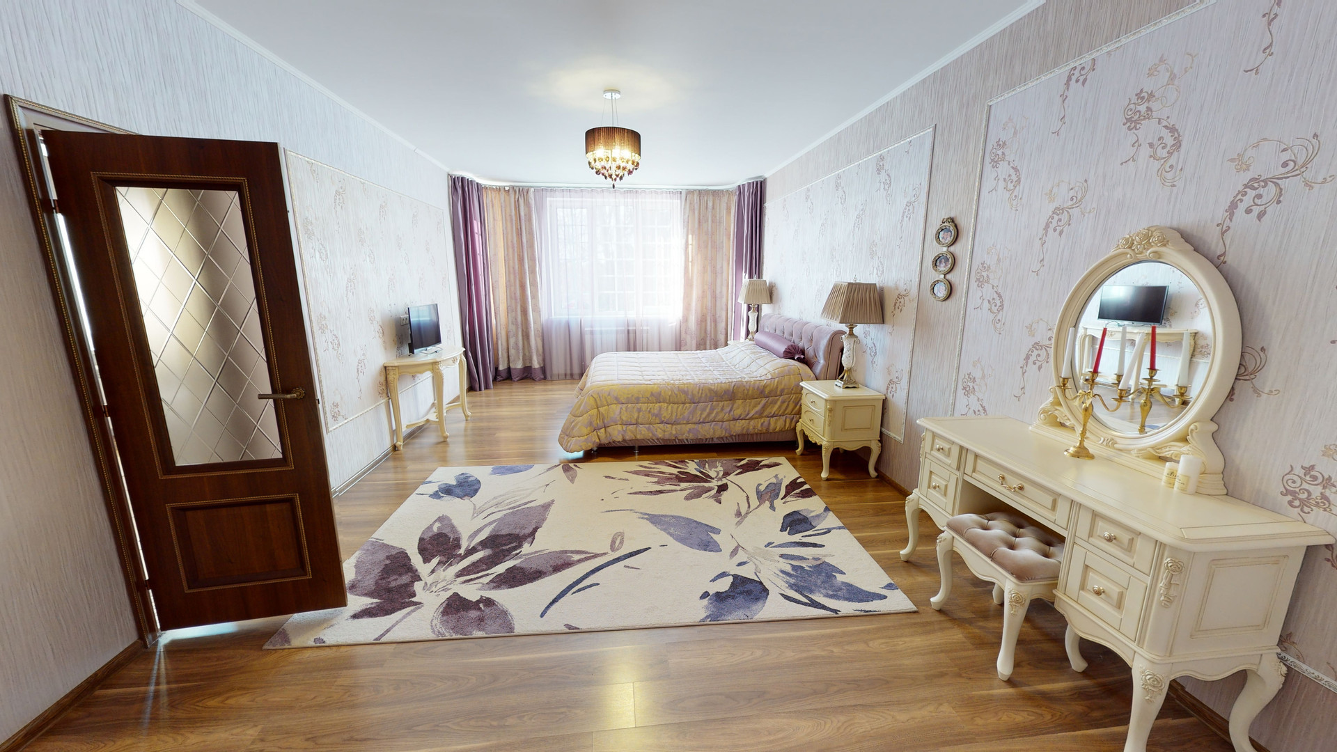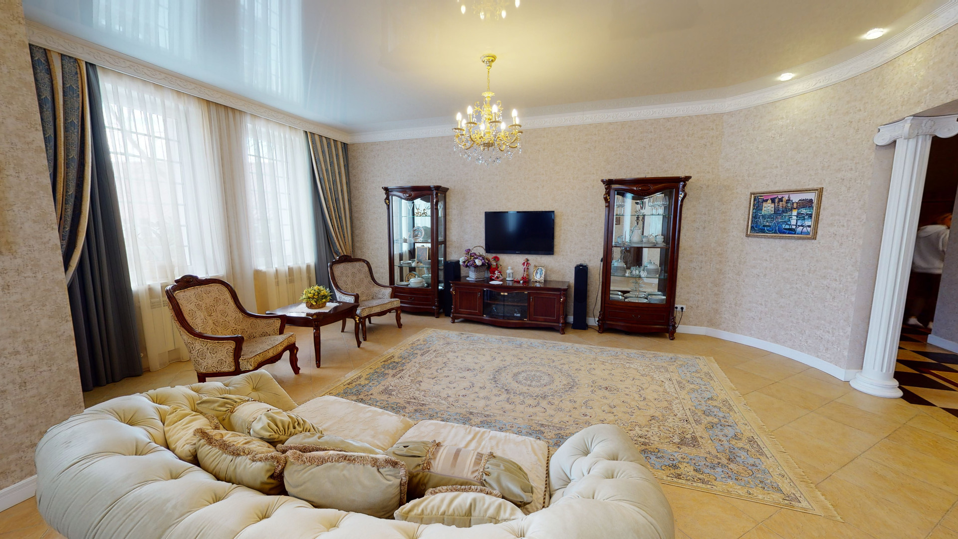 1 этаж: 2 спальни + с/у с сауной, 2 холла, гостиная и белая кухня «тиффани» с встроенной немецкой техникой, холодильниками и теплый гараж.