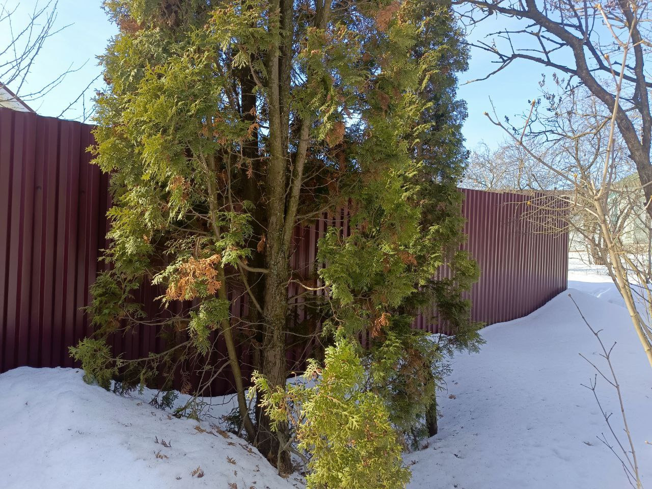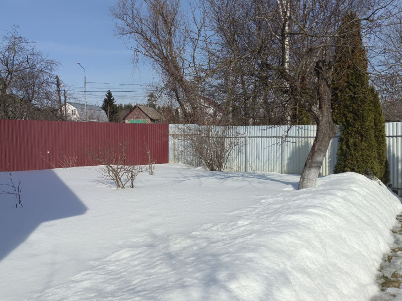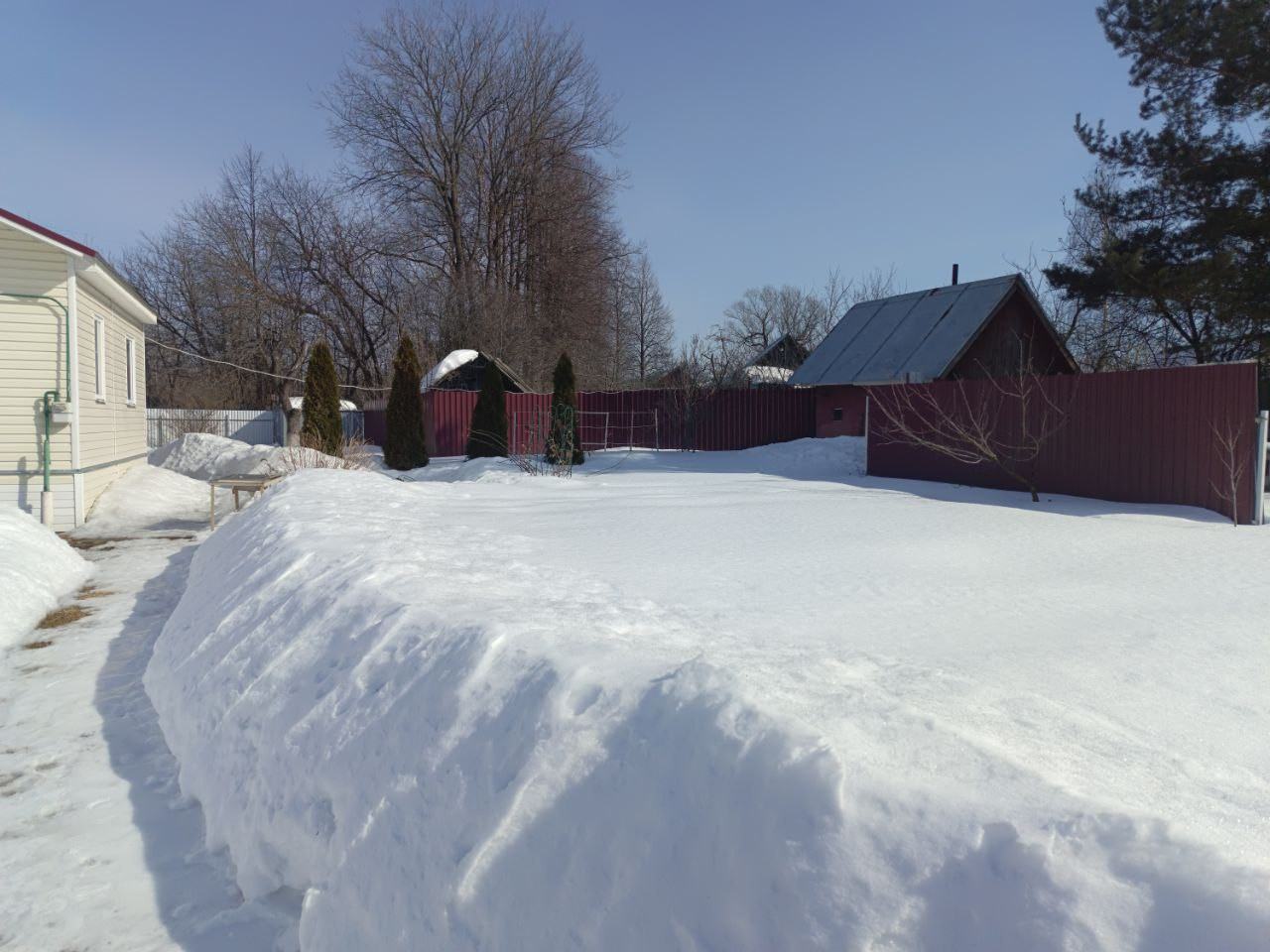 *Участок 10 соток, ухоженный, сухой, ровный, огорожен, с воротами и калиткой. Земли населенных пунктов (ЛПХ). Перед домом – зеленая зона и парковка. Удобное расположение (никто чужой не ездит). На участке расположены баня, гараж-"ракушка", хоз. постройки, высажены туи, плодово-ягодные растения, цветы.