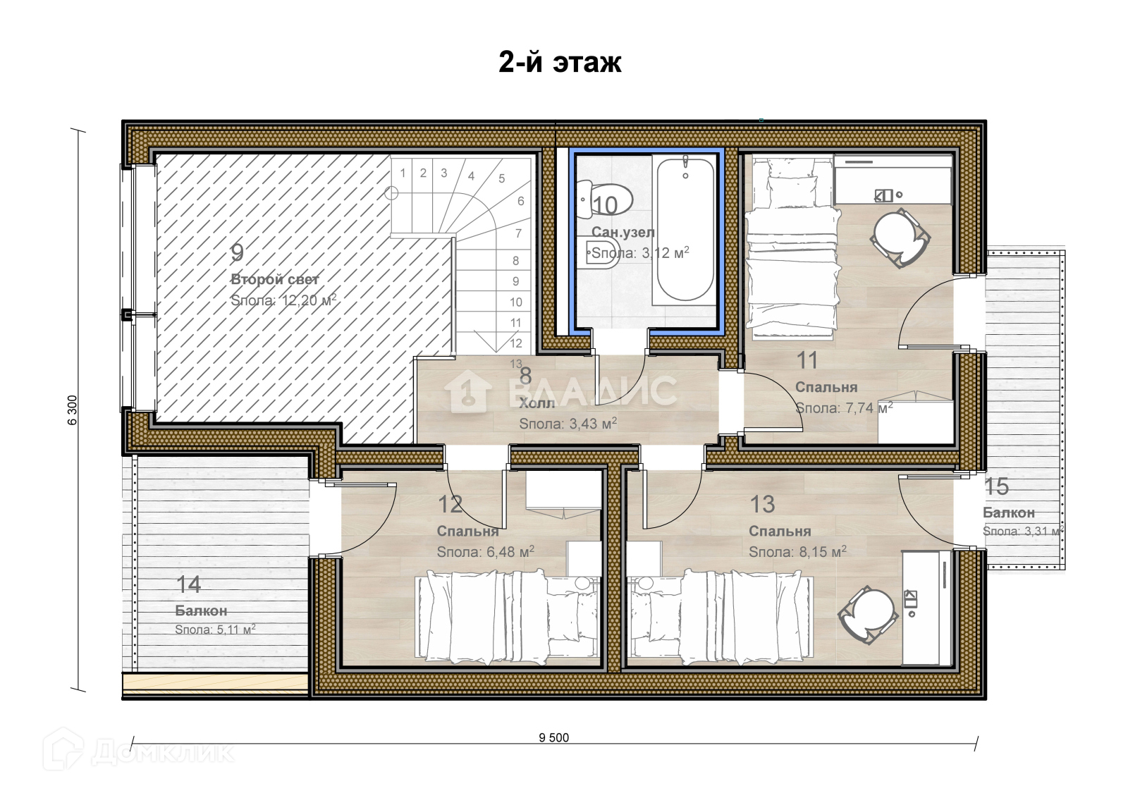 2-этажный дом, 117 м2, на продажу в деревне Ивановке, коттеджный посёлок Лесной остров, 74
