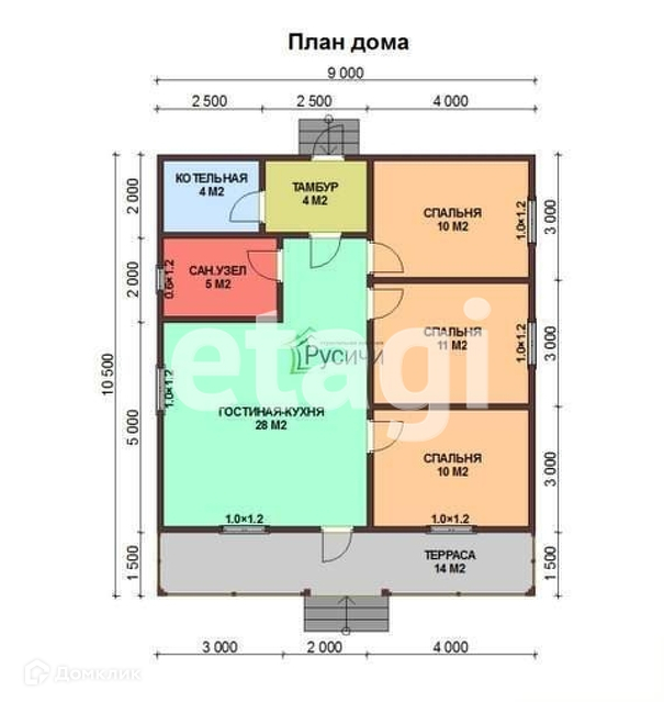 В доме три спальни и кухня-гостиная, с/у, прихожая, котельная.