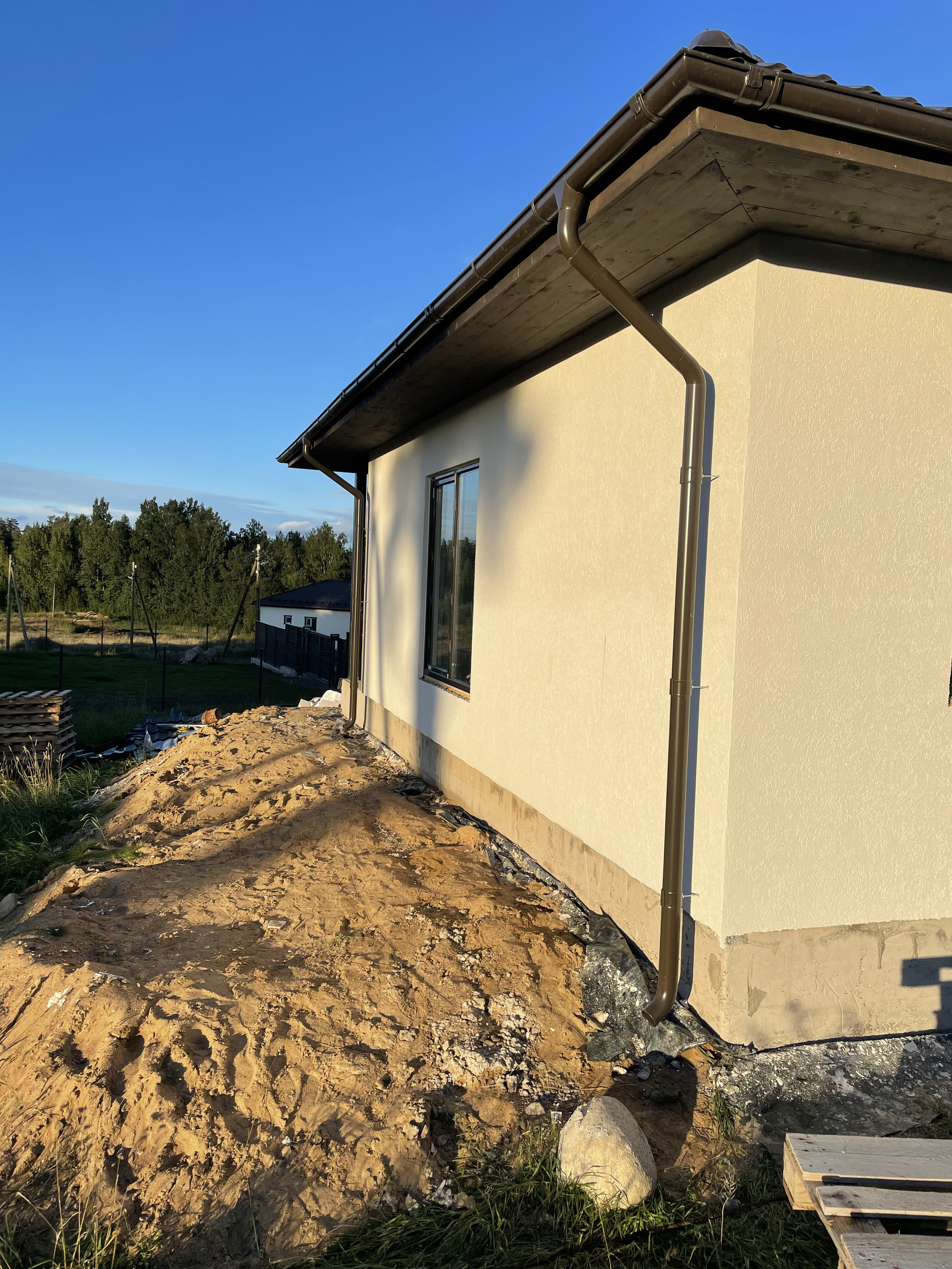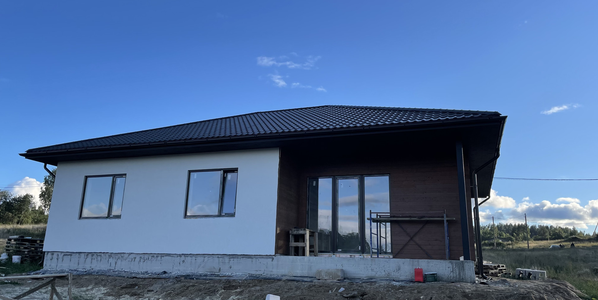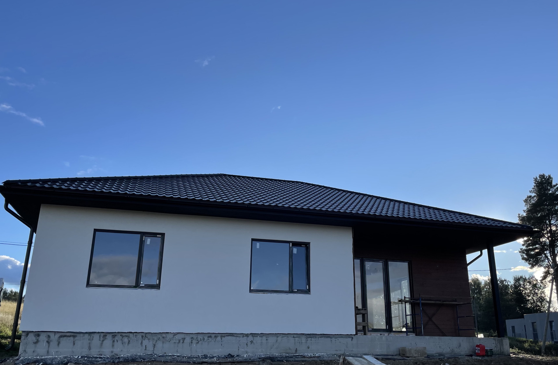 Дом построен на монолитной плите, стены из газобетона. Панорамный вид на сосны. Сухой участок в 9 соток.