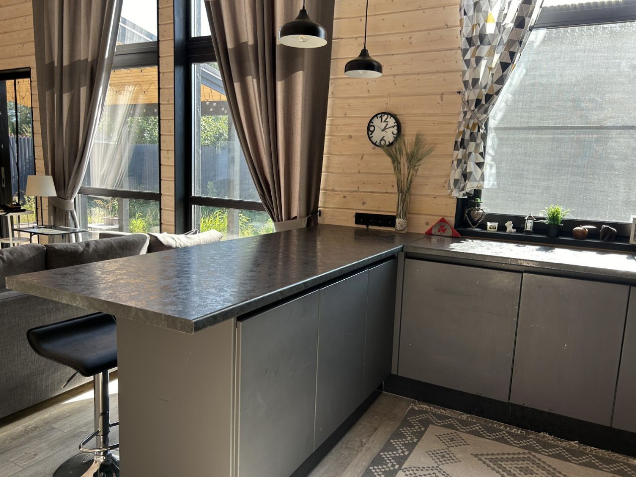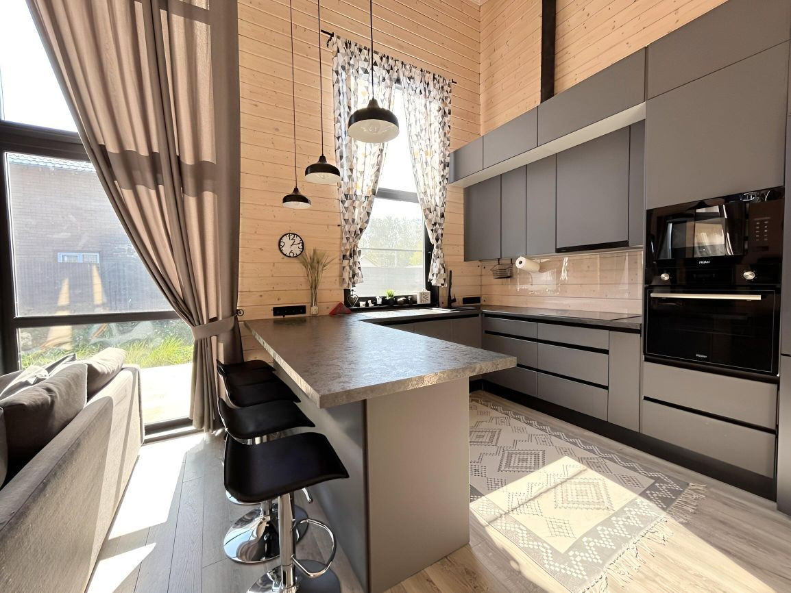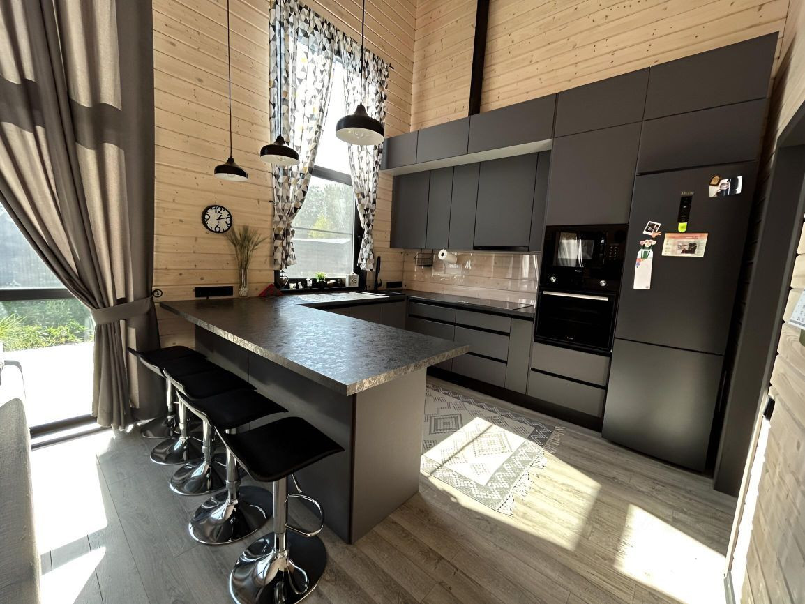 Большая кухня-гостиная с панорамными