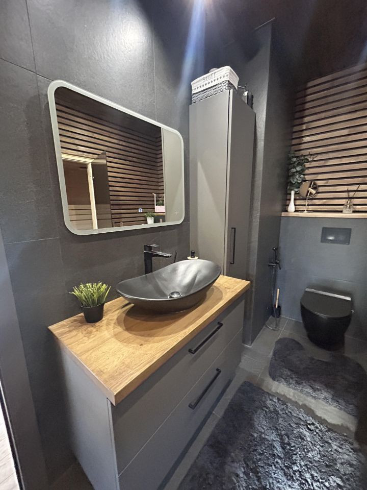 Выполнена Качественная внутренняя отделка. Санузл полностью в керамограните. Качественная сантехника.