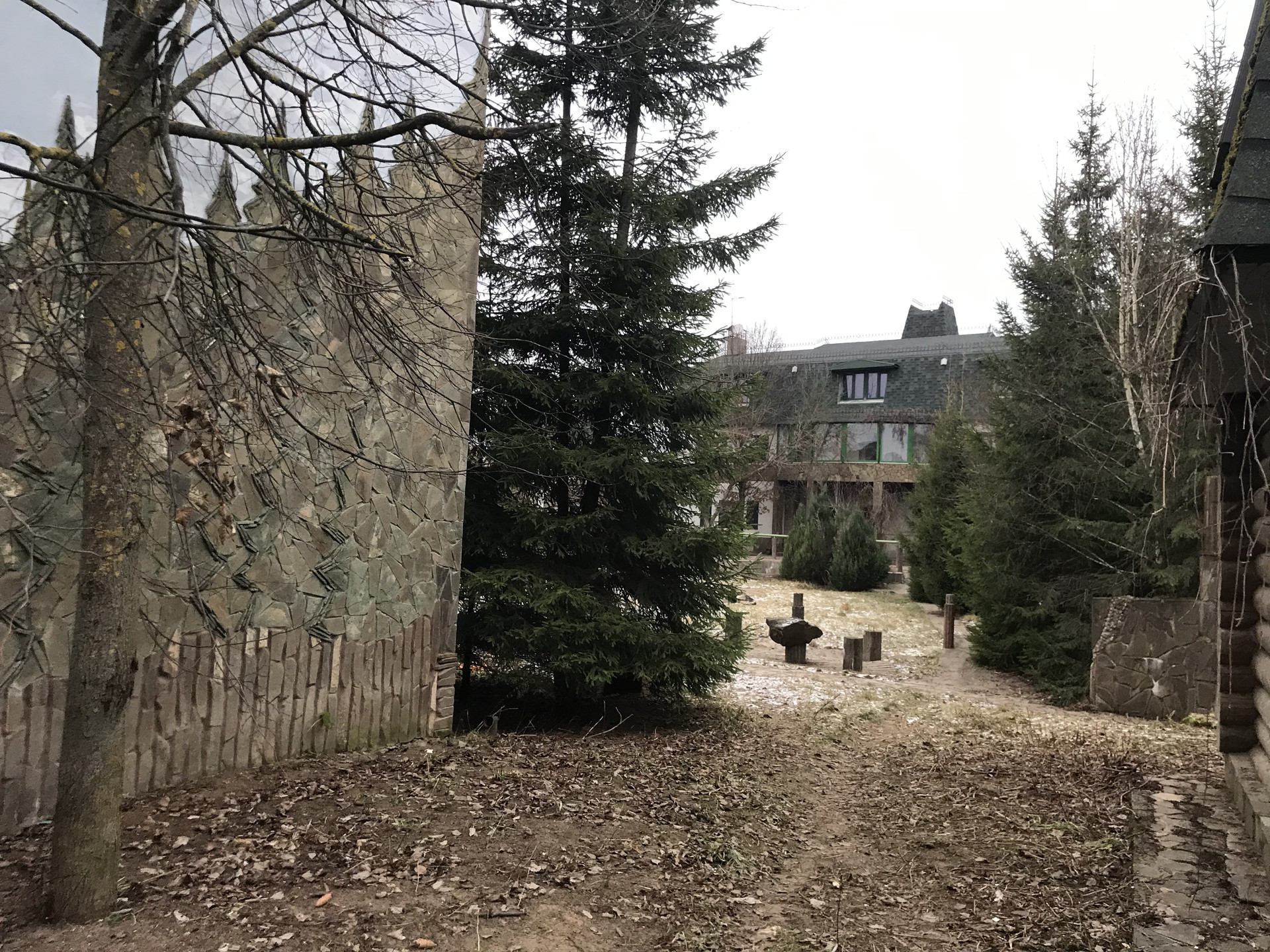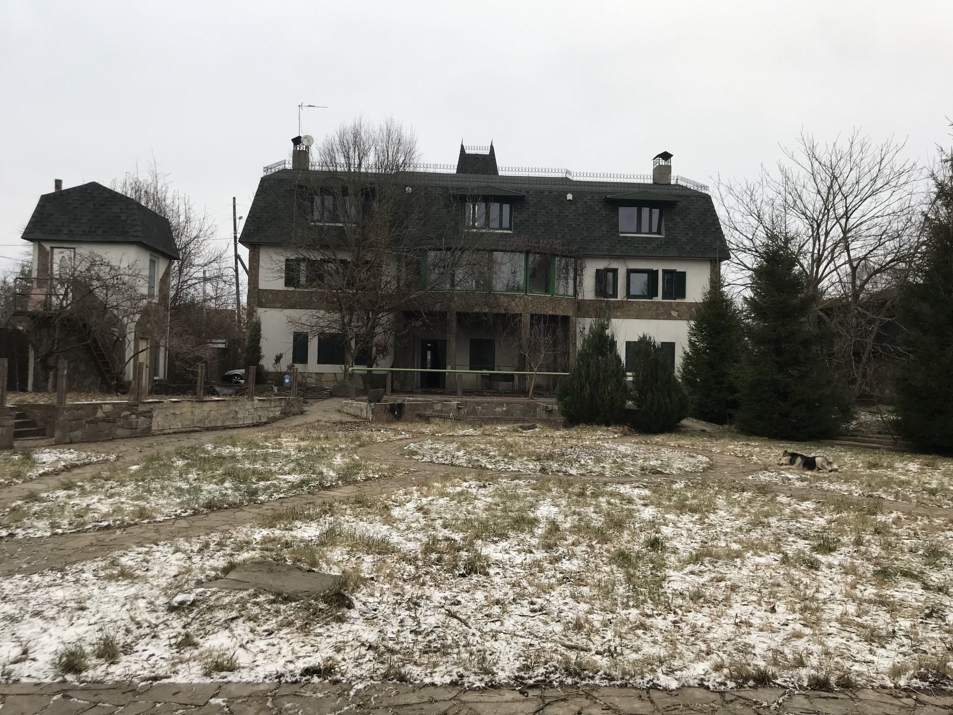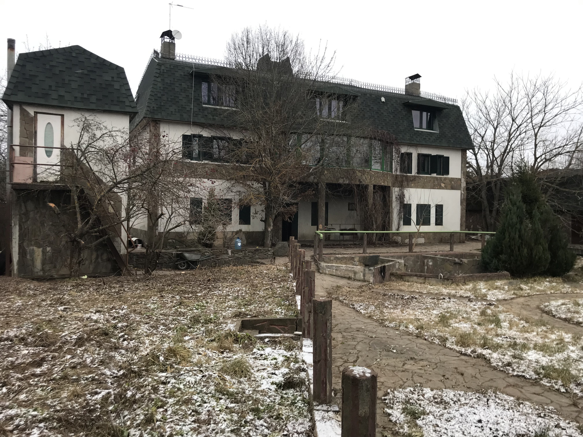 На участке: баня из деревянного бруса, котельная с домиком для охраны или садовника, двух этажный гараж на 2 автомобиля. Пространство на втором этаже, может быть малой гостевой зоной. Все постройки теплые с полностью подведёнными коммуникациями, на бетонном фундаменте с широкими стенами и мягкой черепицей.