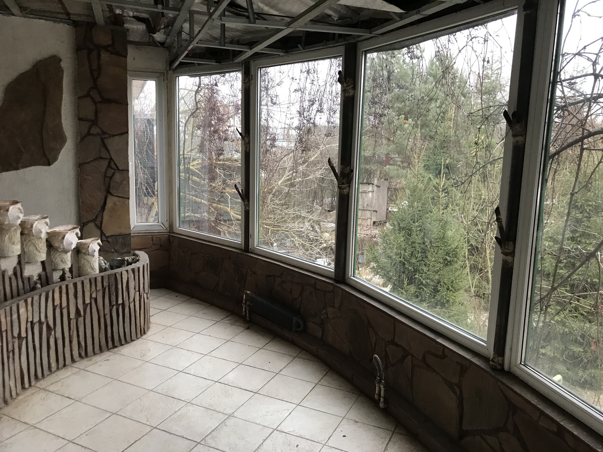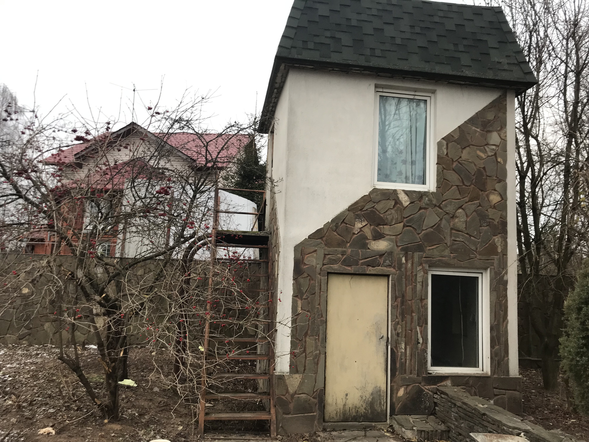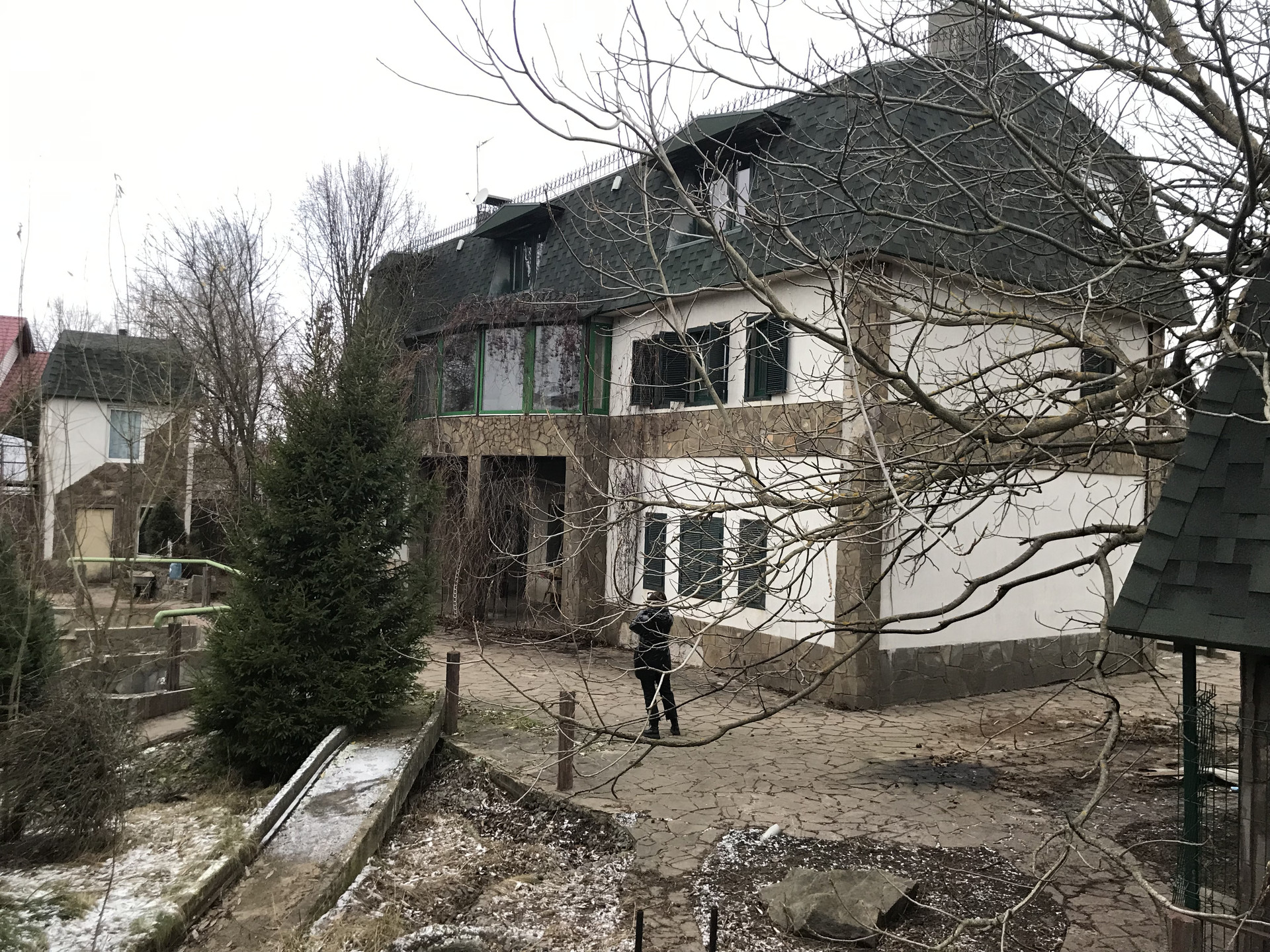 На участке: баня из деревянного бруса, котельная с домиком для охраны или садовника, двух этажный гараж на 2 автомобиля. Пространство на втором этаже, может быть малой гостевой зоной. Все постройки теплые с полностью подведёнными коммуникациями, на бетонном фундаменте с широкими стенами и мягкой черепицей.