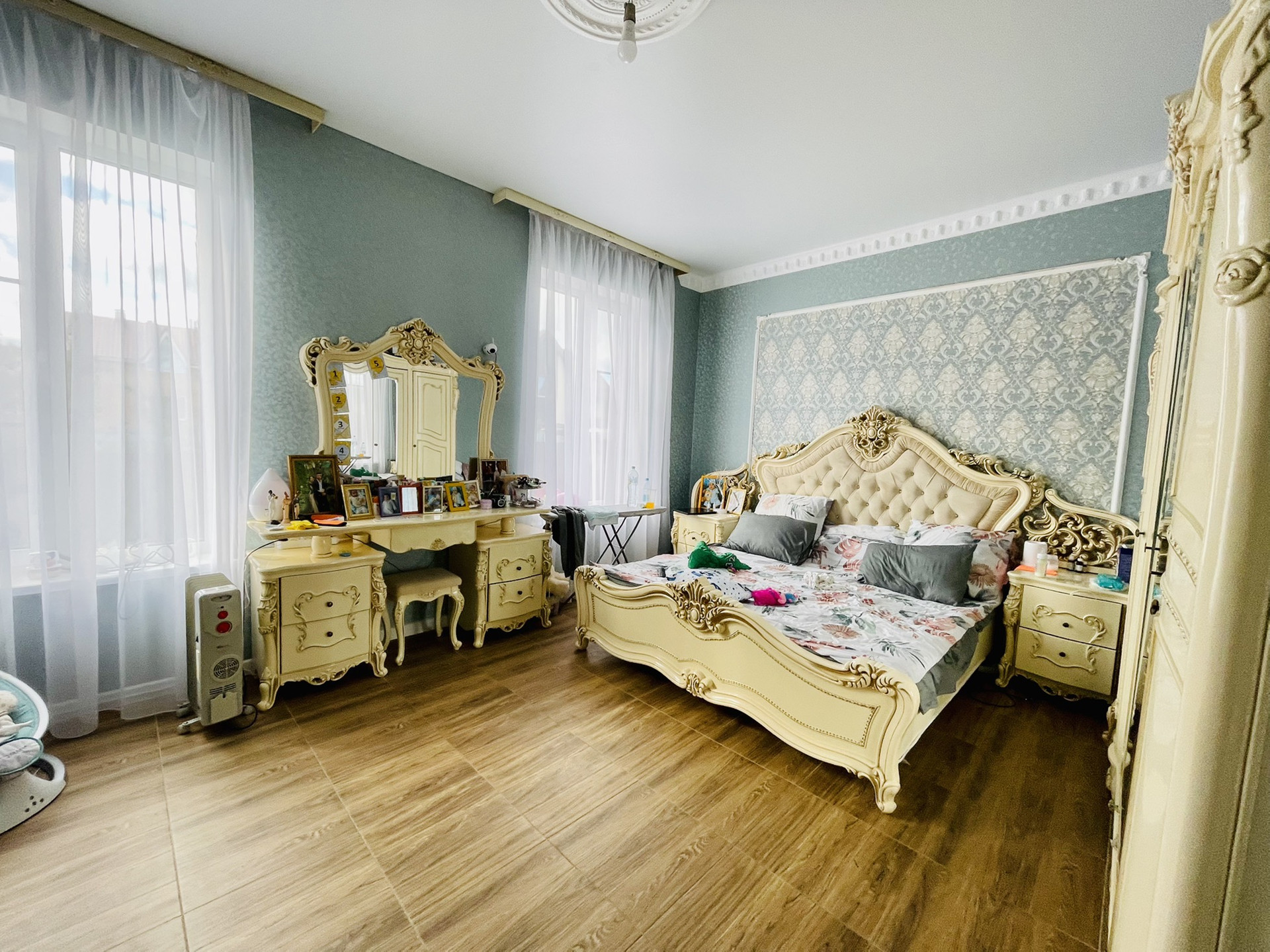 Дом 195 квадратных метров по первому этажу, второй этаж мансарда, расположен на огороженном участке 12 соток.
