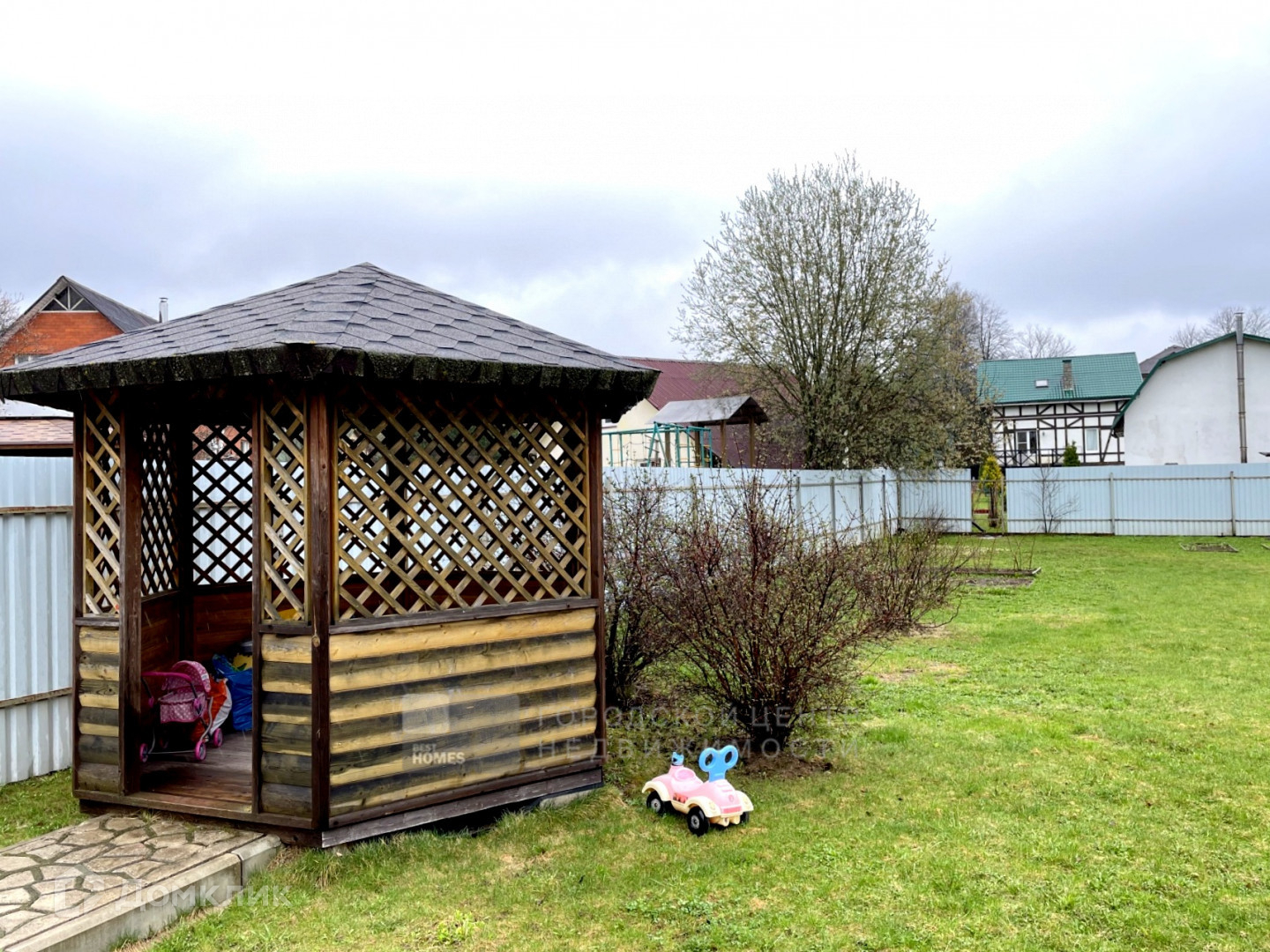 Ухоженный участок 12,8 сотки, ровный, правильной формы, огорожен мет. забором.