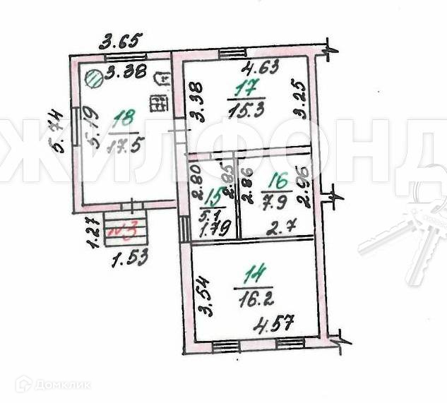 Жилая площадь 39.4 м2