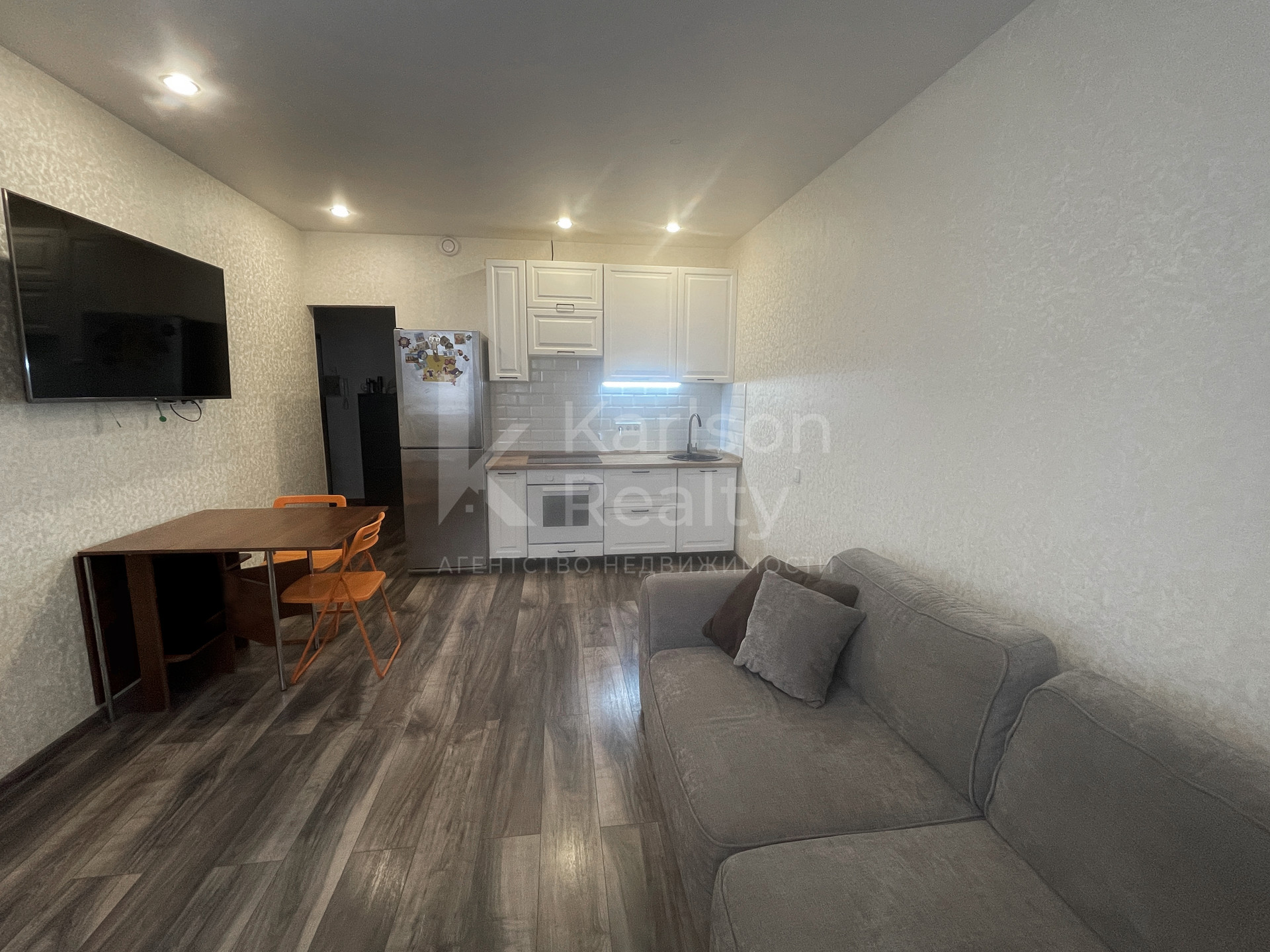 В квартире выполнен дизайнерский качественный ремонт в светлых тонах с использованием материалов премиум класса: теплый пол в комнате, прихожей и гардеробной, зона гардеробной отделена зеркальными дверями-купе, кухня с встроенной техникой - варочная панель, духовой шкаф, вытяжка, просторная комната. Практически вся мебель и техника остается в подарок новому хозяину! Двор дома оборудован современной детской площадкой, отсутствуют проблемы с парковкой.