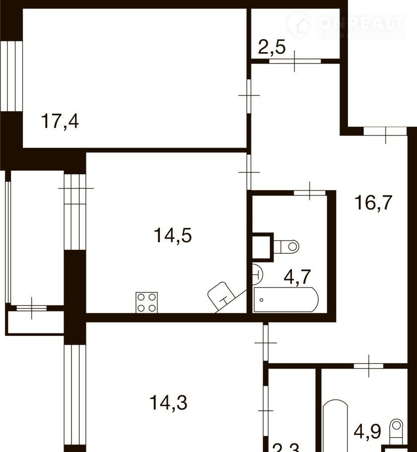 Общая площадь 77.3 м2