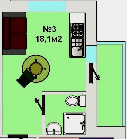 Площадь кухни 3 м2