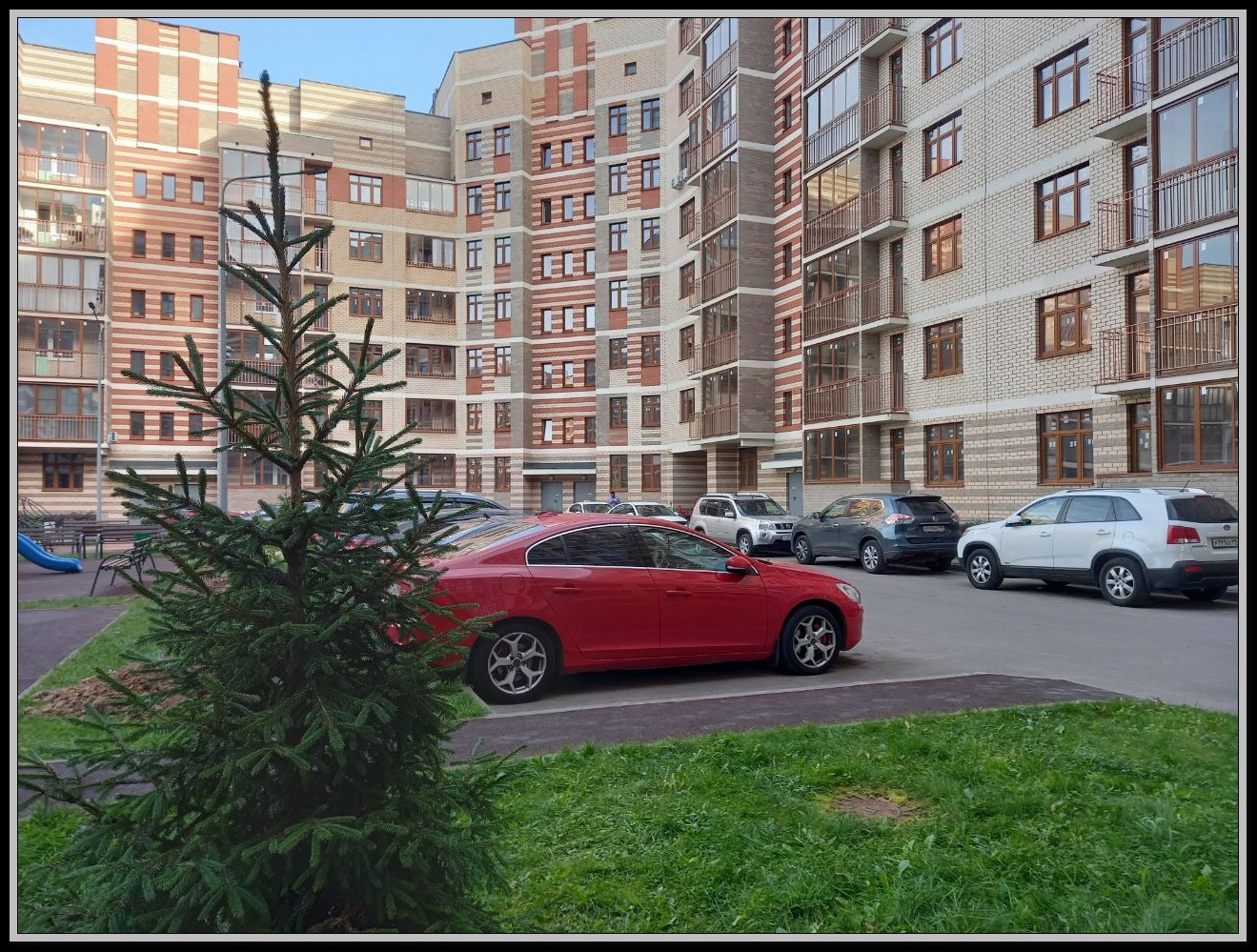 ЖК, в котором находится студия, предлагает огороженную закрытую территорию и парковку. Это одна из лучших планировок и домов с прекрасным видом. В подъезде установлен лифт OTIS, а также есть колясочная. Во дворе есть уютная зона отдыха, баскетбольная площадка, школа и детский сад.