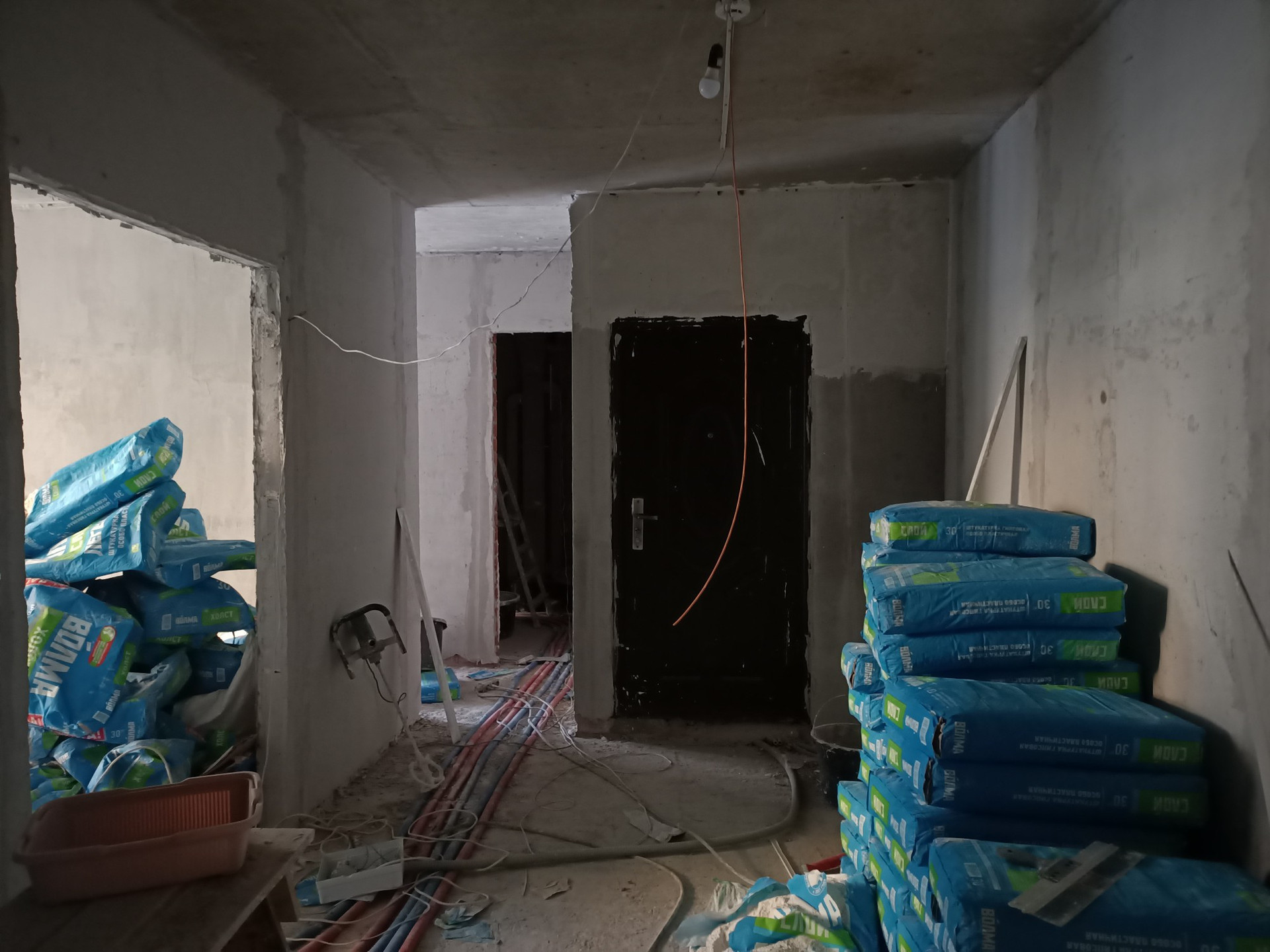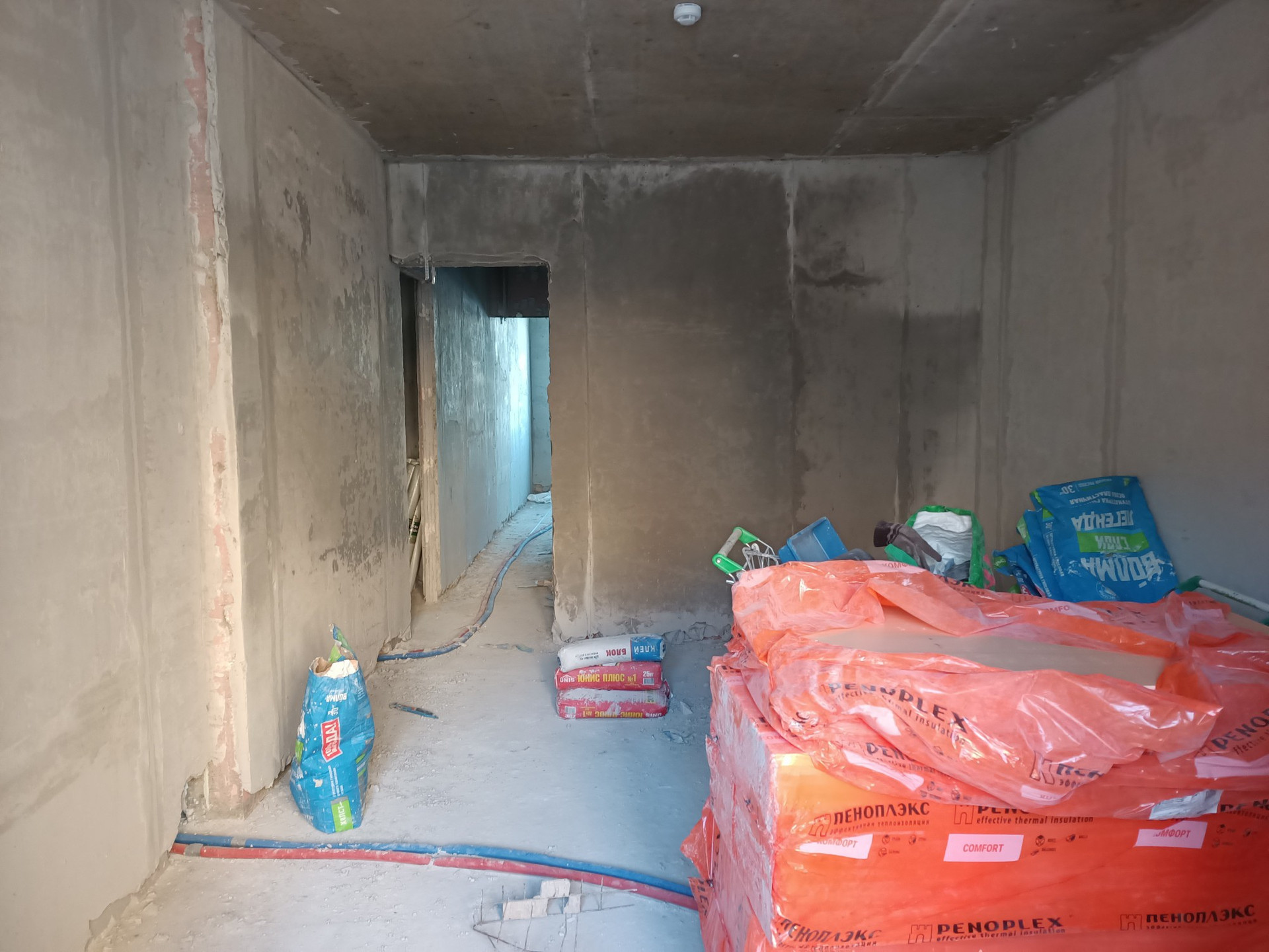 (без 90.3 кв.м). В квартире заменены трубы отопления на рехау, заменены стеклопакеты, выполнена штукатурка стен, ведутся работы по монтажу электрики. На балконах планируется установка дверей с остеклением в пол (французский балкон).