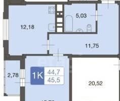 Общая площадь 44.7 м2