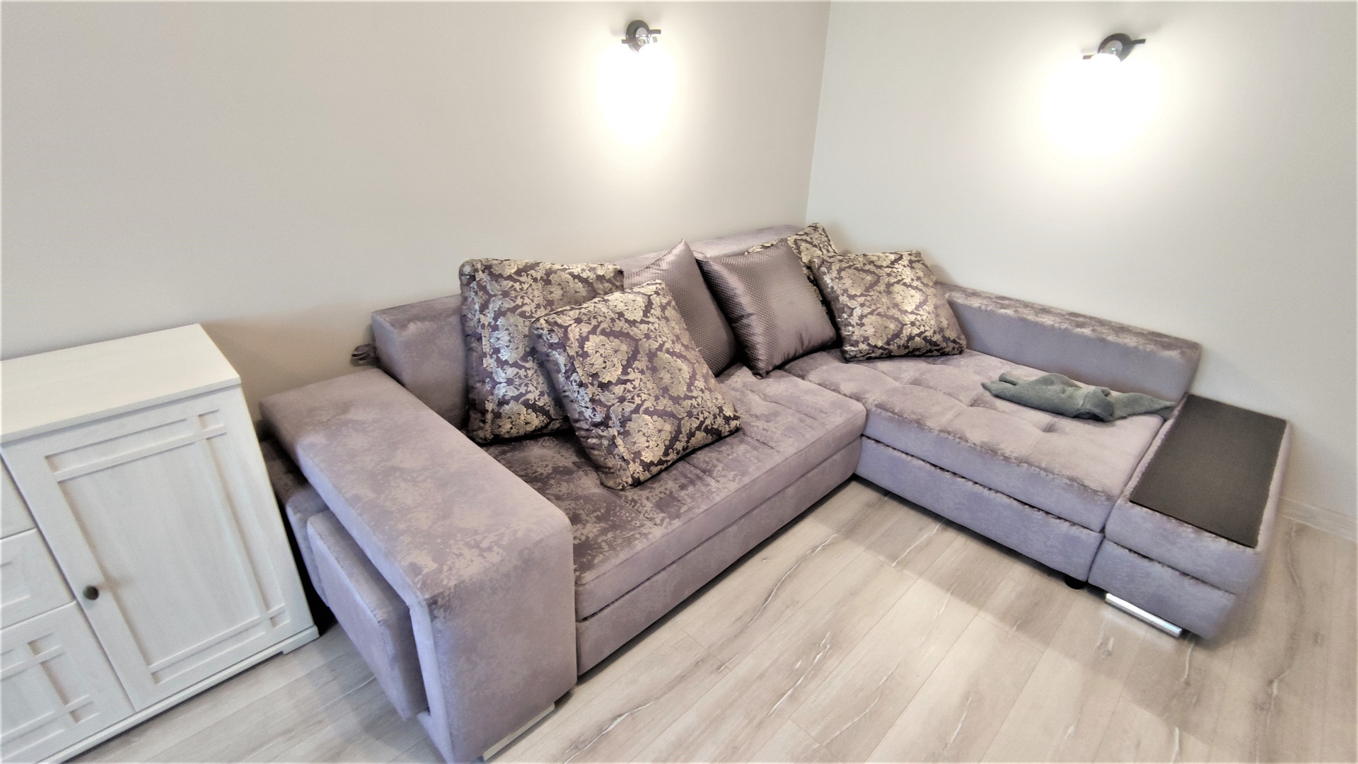 КОМНАТА = 20,5м2, обставлена мебелью, Диван-кровать, на полу ламинат.