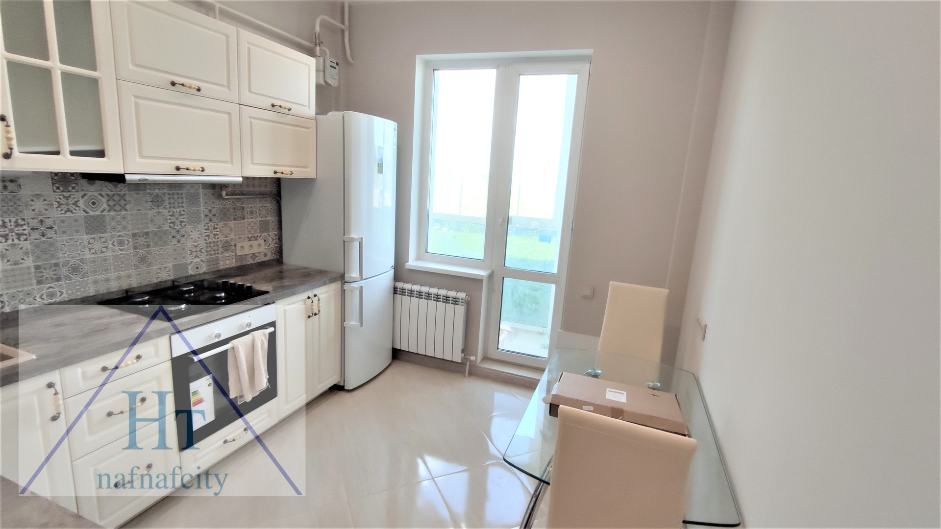 КУХНЯ: = 9,7м2, ГАЗ.плита с духовкой, вытяжка, большой двухкамерный холодильник LG,