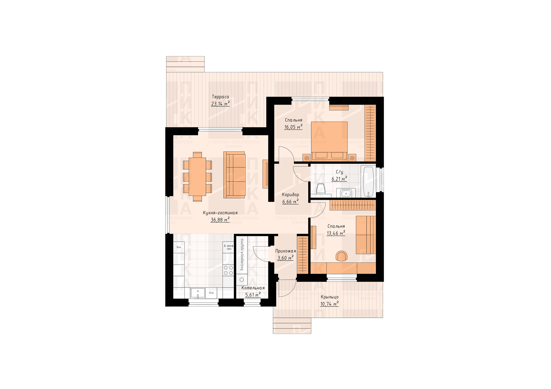 6. Входная дверь стальная с двойным термо-разрывом, окна ПВХ с 2-х камерными стеклопакетами.