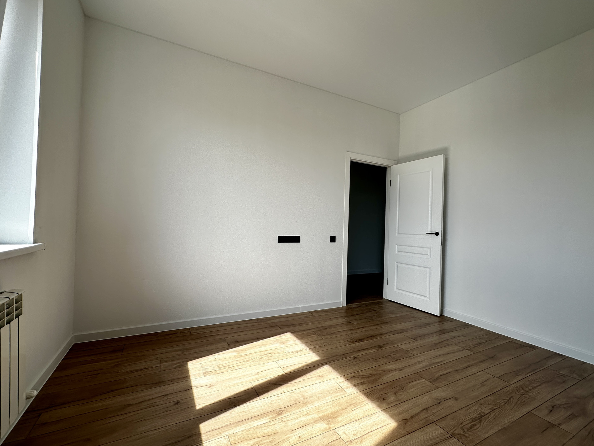 Отделка пола основных помещений: полусухая стяжка по маякам, ламинат
