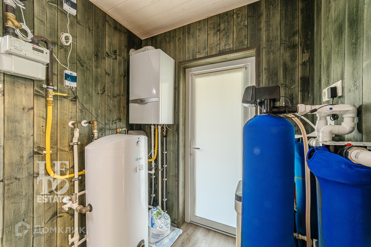 В дом заведены все коммуникации: газ, электричество, водопровод - скважина, канализация - септик. Площадь участка позволяет разместить дополнительные сооружения в виде гаража и гостевого дома с баней.