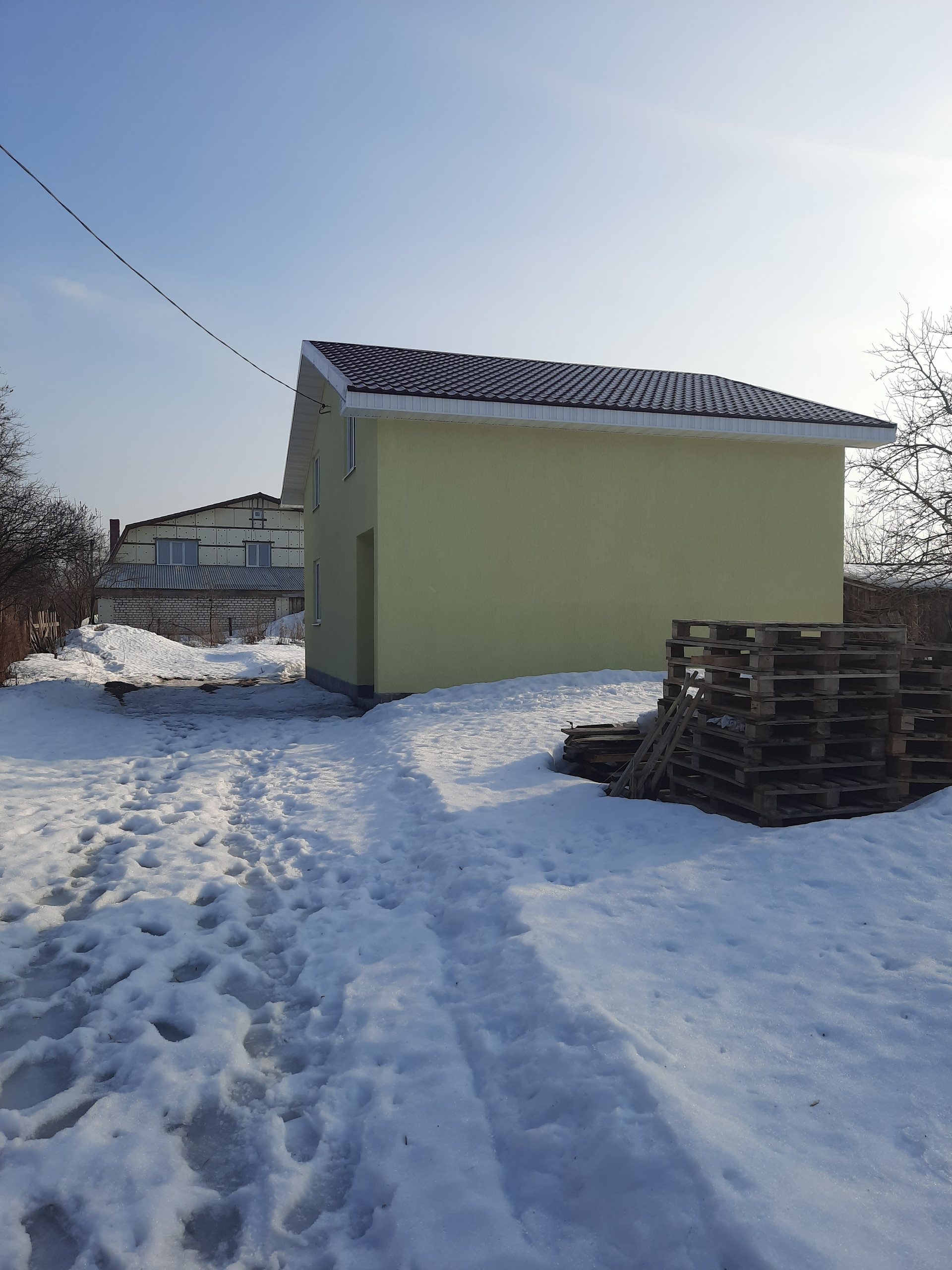 Отделка 1-ого этажа: смонтировано электричество, отопление, теплый пол по 1му этажу, выполнены межкомнатные перегородки. В наличии двухконтурный котел, насосная станция.