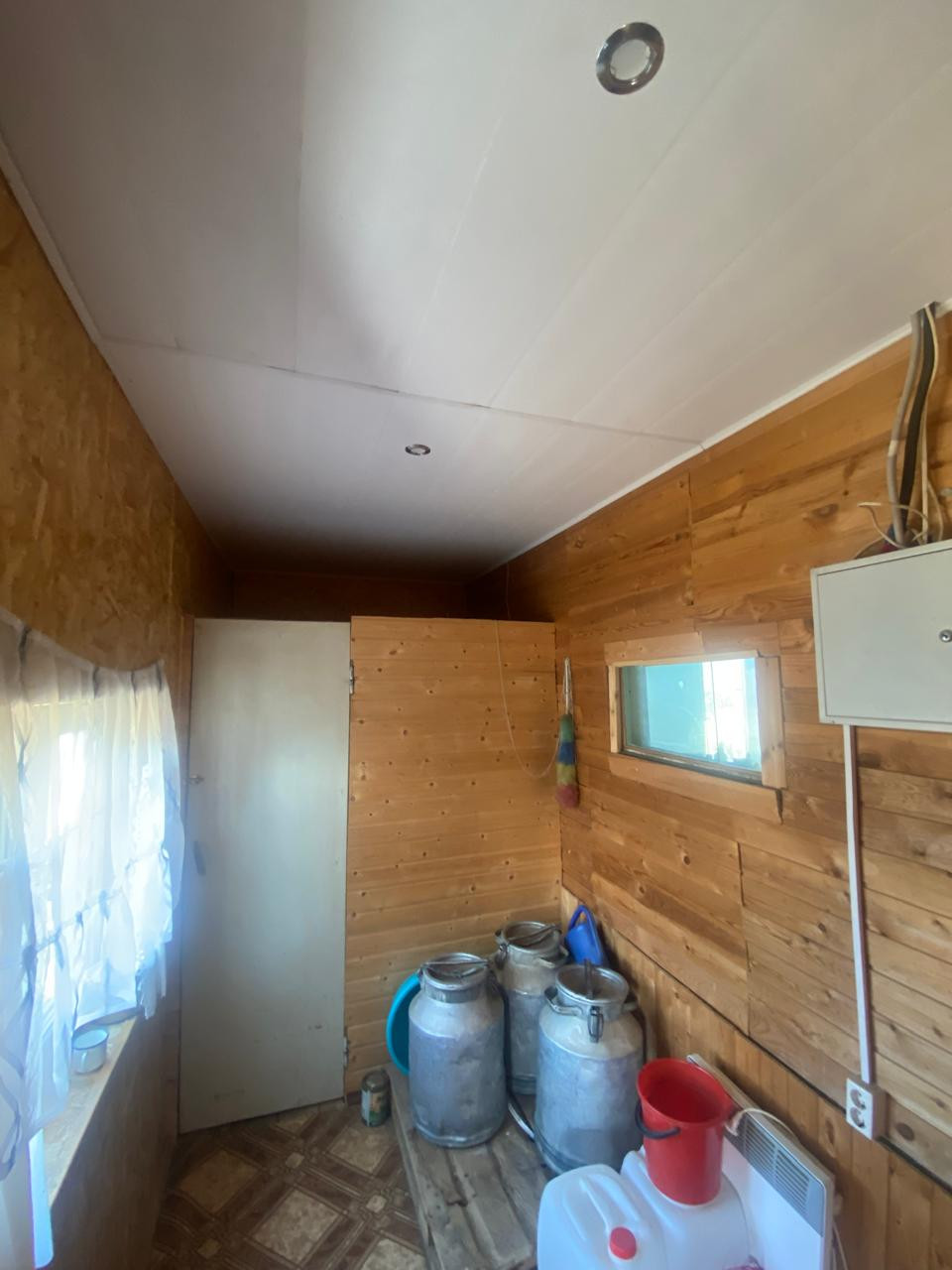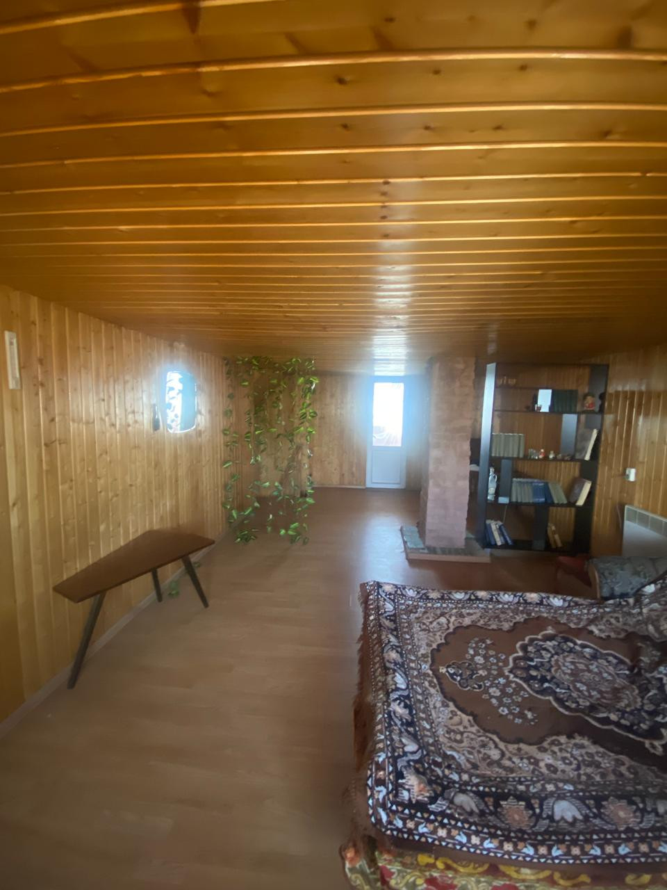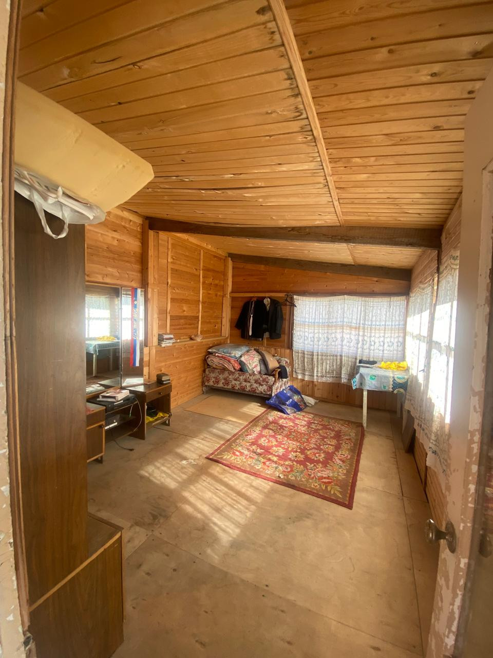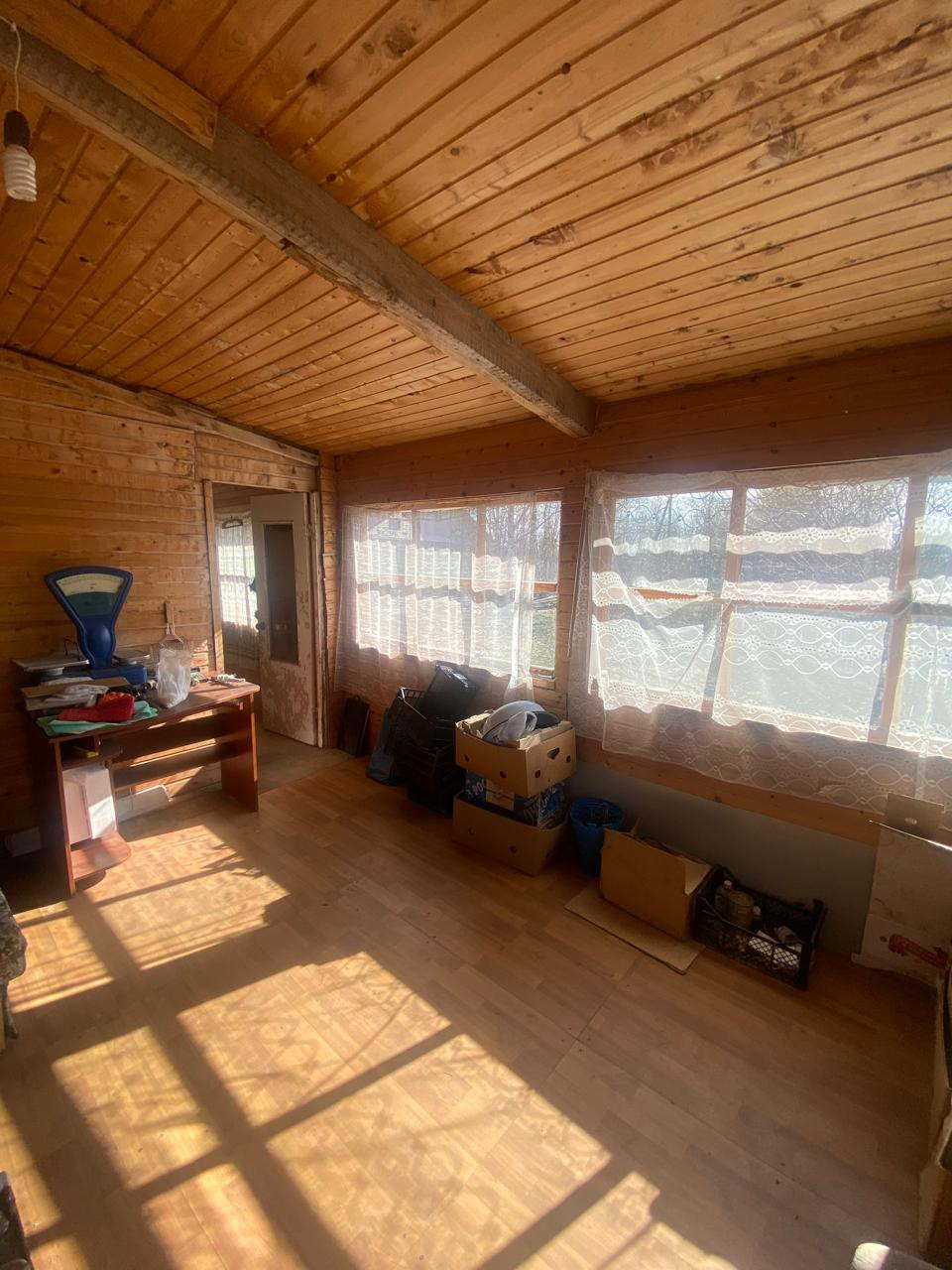 Внутри обшит вагонкой, установлены стеклопакеты.