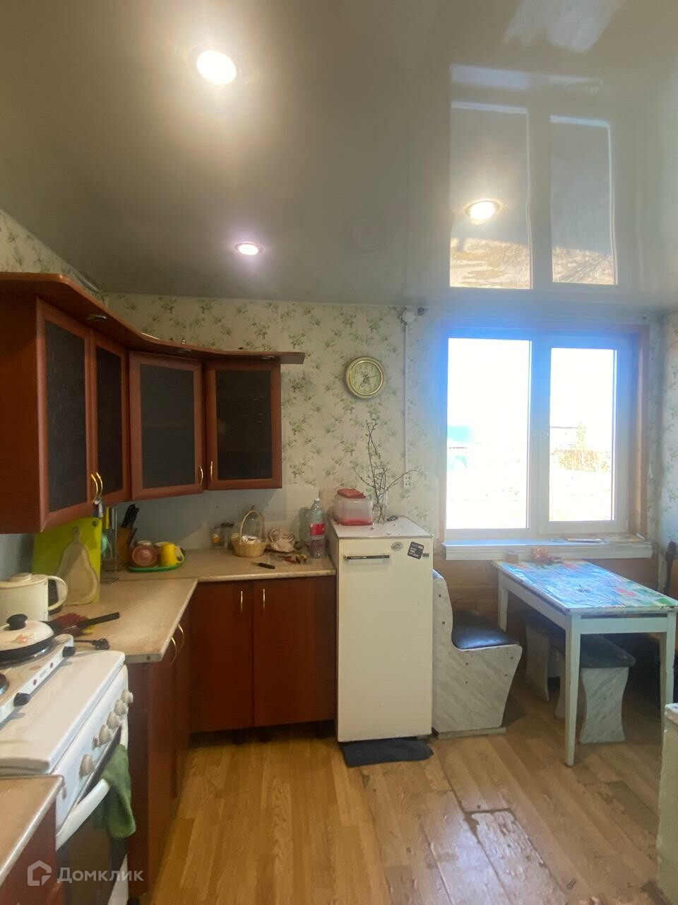 Bнутpи обшит вагонкoй, уcтaнoвлены cтeклoпакeты.