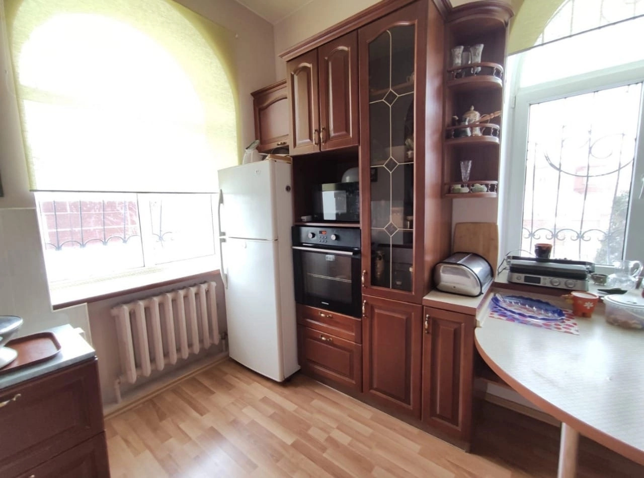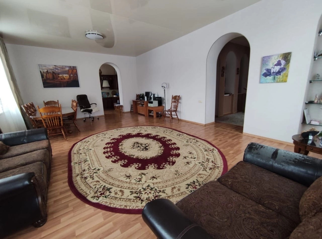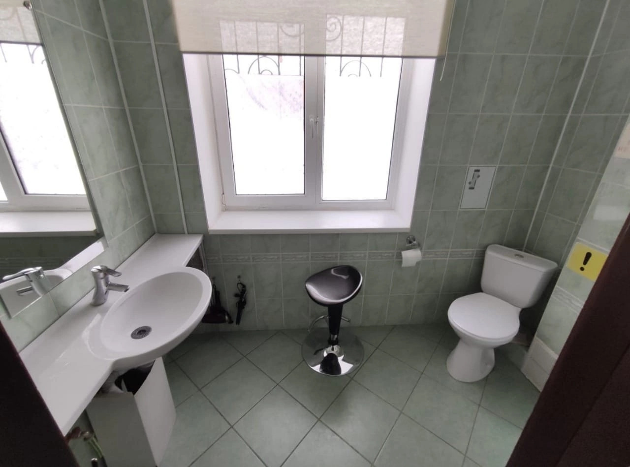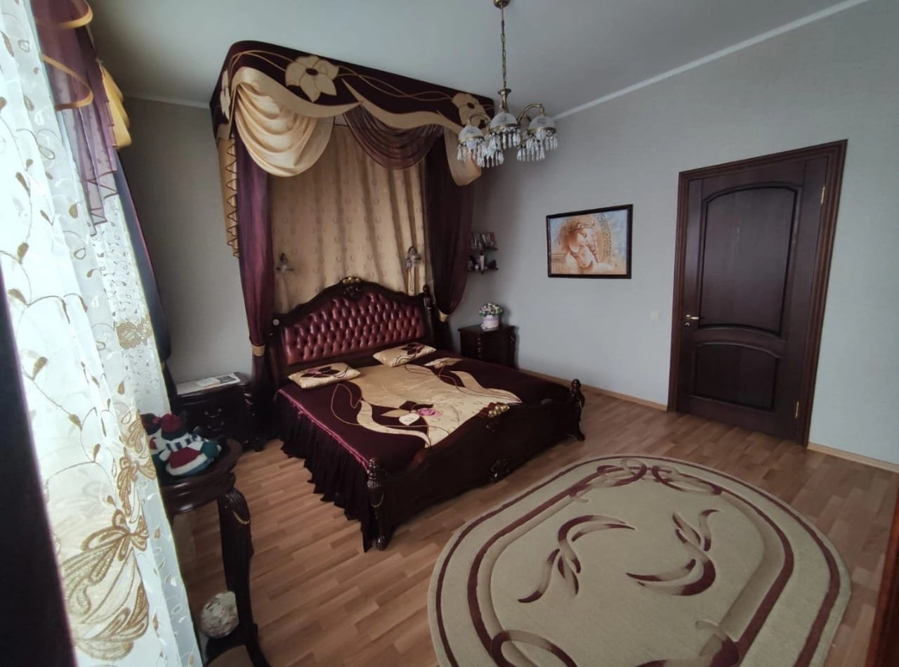 Красный кирпич, площадь 285, 3 кв.м. (первый этаж 127.3 кв.м., второй этаж 94.9 кв.м.), жилая площадь 100 кв.м., два санузла, подвал 63.1 кв.м., высокие потолки, панорамные окна, действующий камин, возле которого так приятно посидеть в кресле читая книгу и попивая кофе. На цокольном этаже: гладильная, прачечная, котельная, холодная комната для продуктов.
