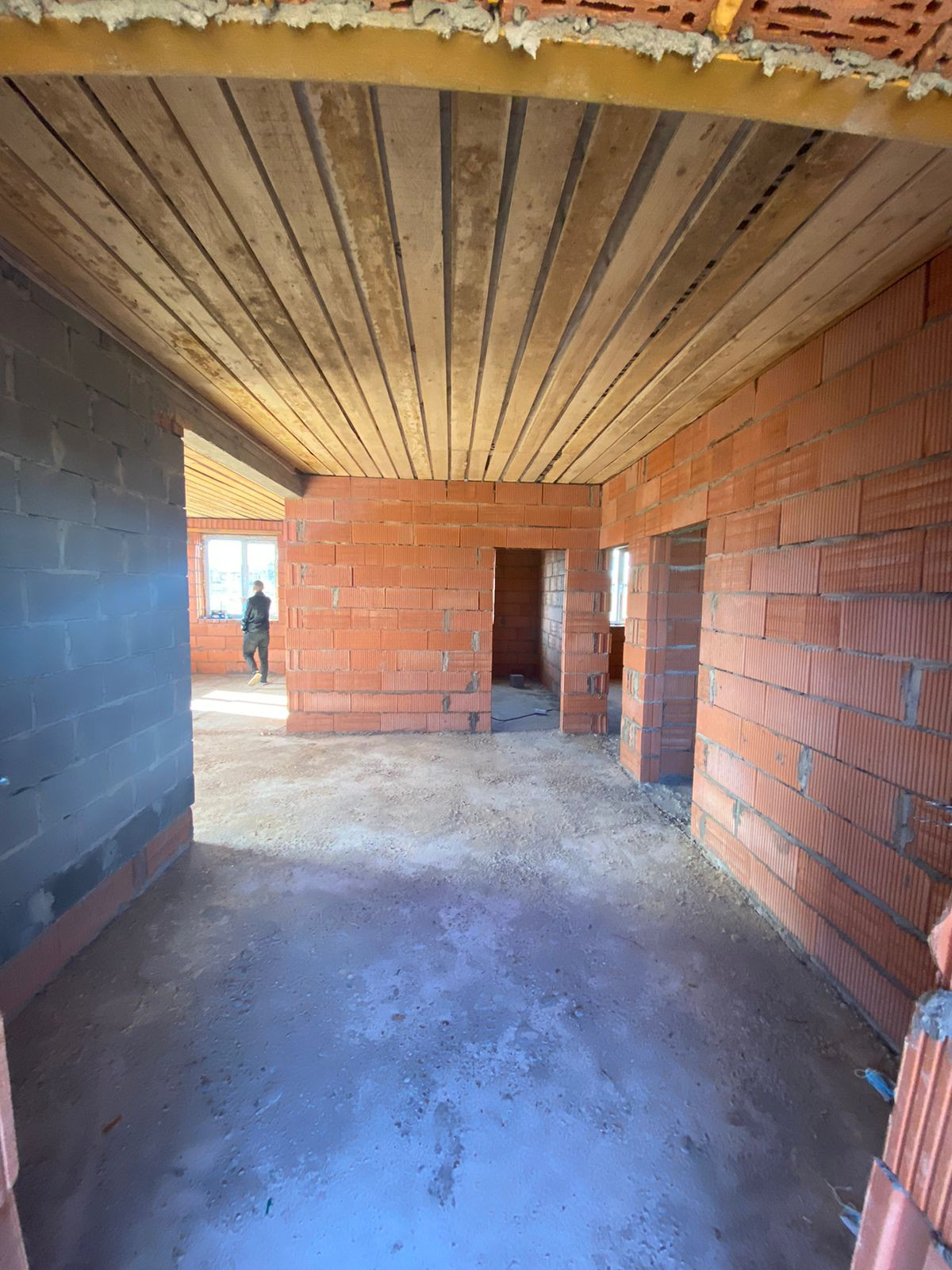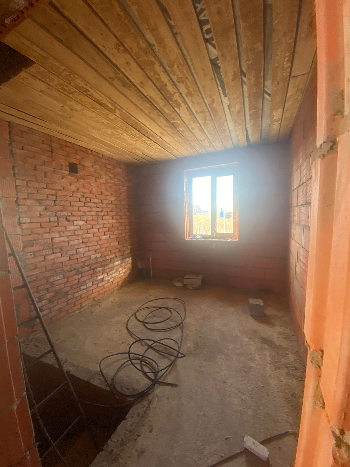 В доме выполнена засыпка пола бетоном. Газовое оборудование проложено до забора, а канализация уже установлена.