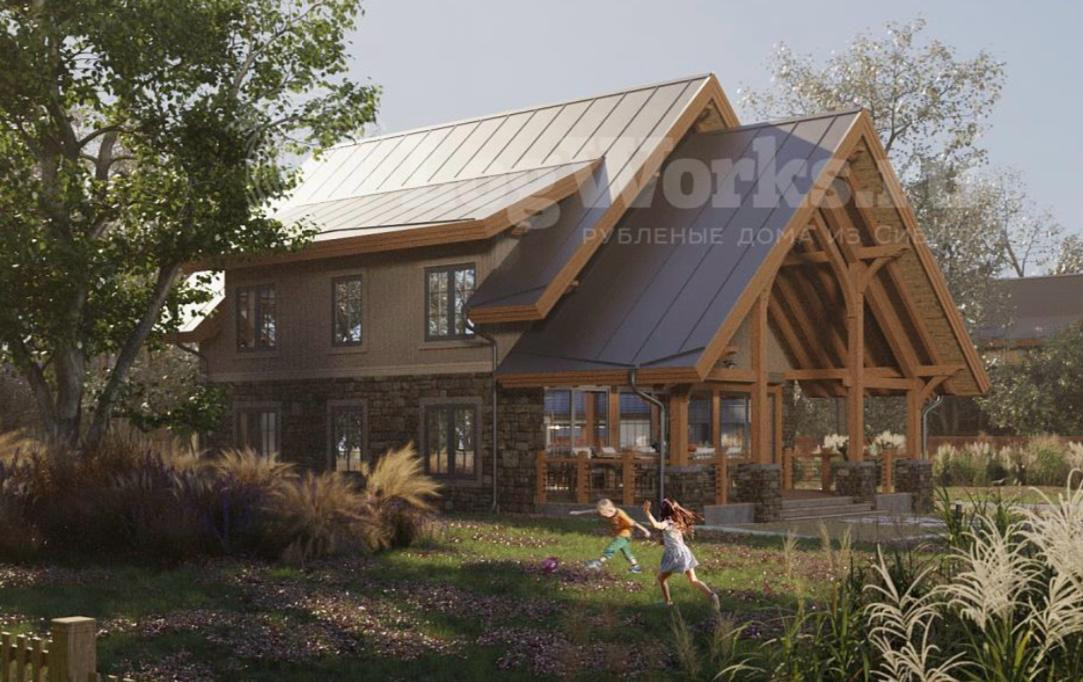 -Видовой каркас дома, из бруса большого сечения всегда на виду и является отличительной особенностью архитектуры