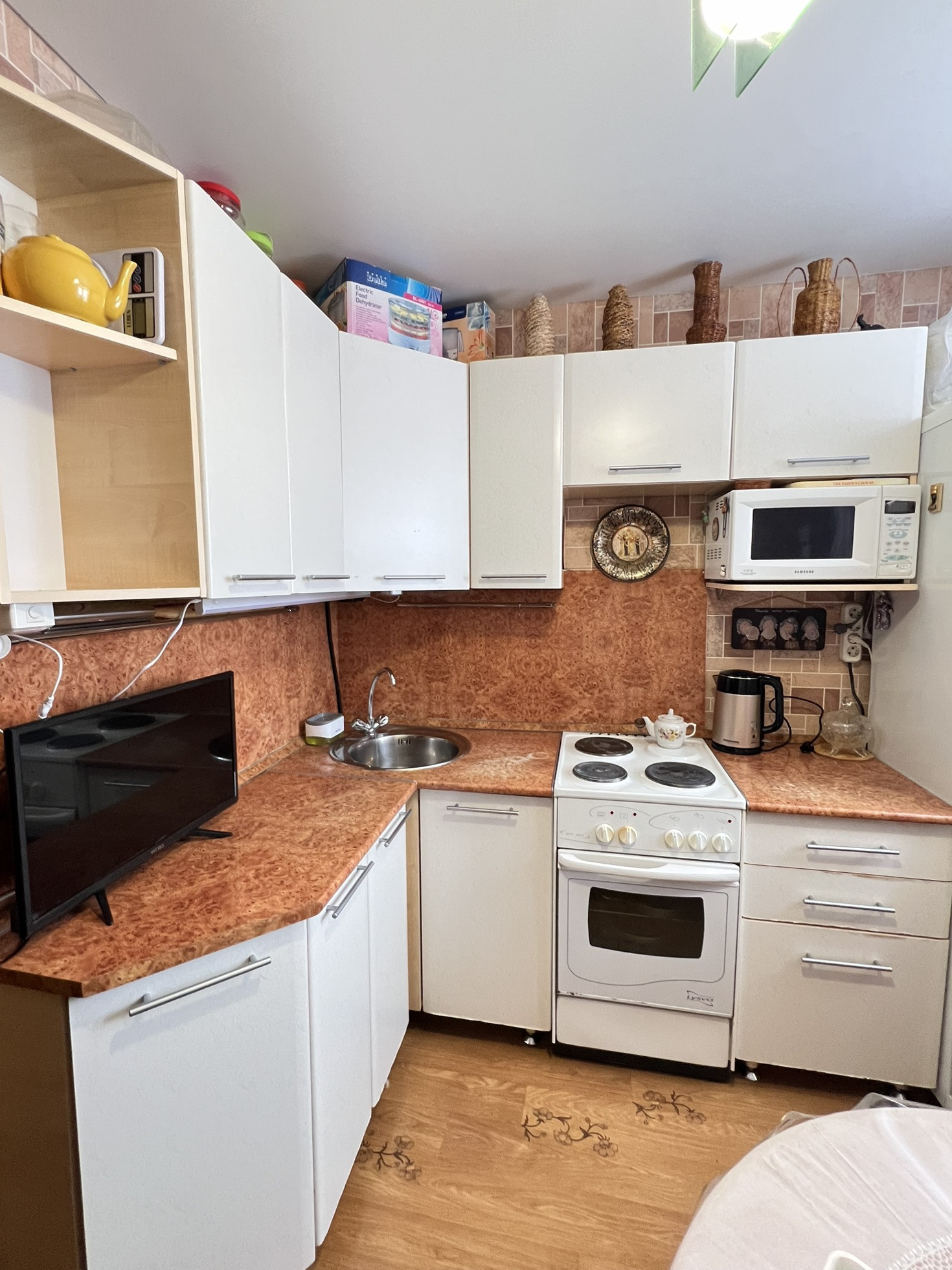 Светлая, теплая квартира в кирпичном доме в центре поселка. Рядом детский сад, школа, амбулатория, магазины Пятерочка, Красное и Белое, Магнит, кафе, по средам большой деревенский базар с фермерской сельхоз/продукцией, одеждой, и тд.