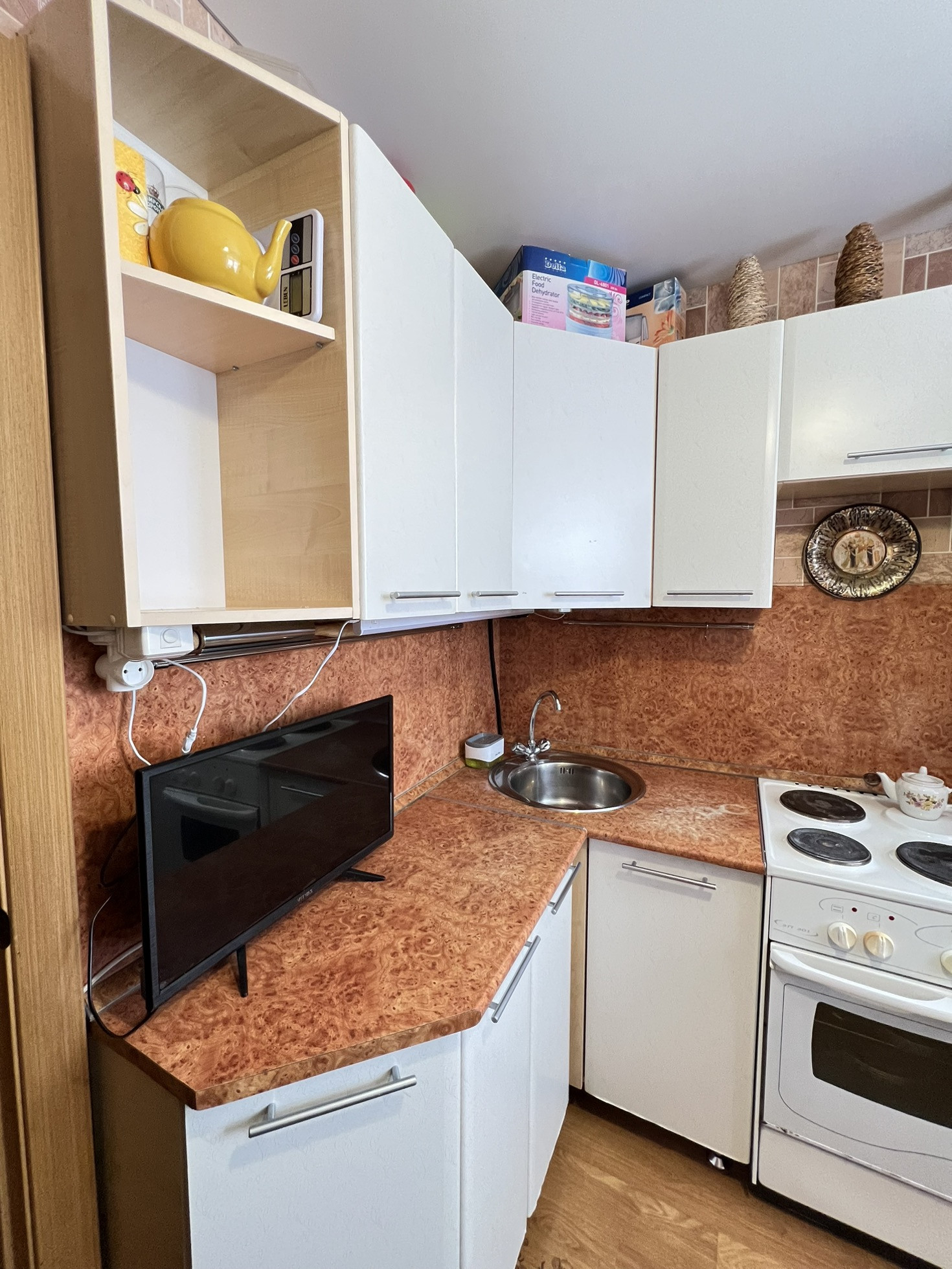 Окна квартиры выходят в центр двора и на улицу с кухни. Хороший ремонт, вложений не требует, заезжай и живи! Заменена вся электропроводка, батареи и стояк в ванной. В ванной стоит большой водонагреватель, всегда есть горячая вода.
