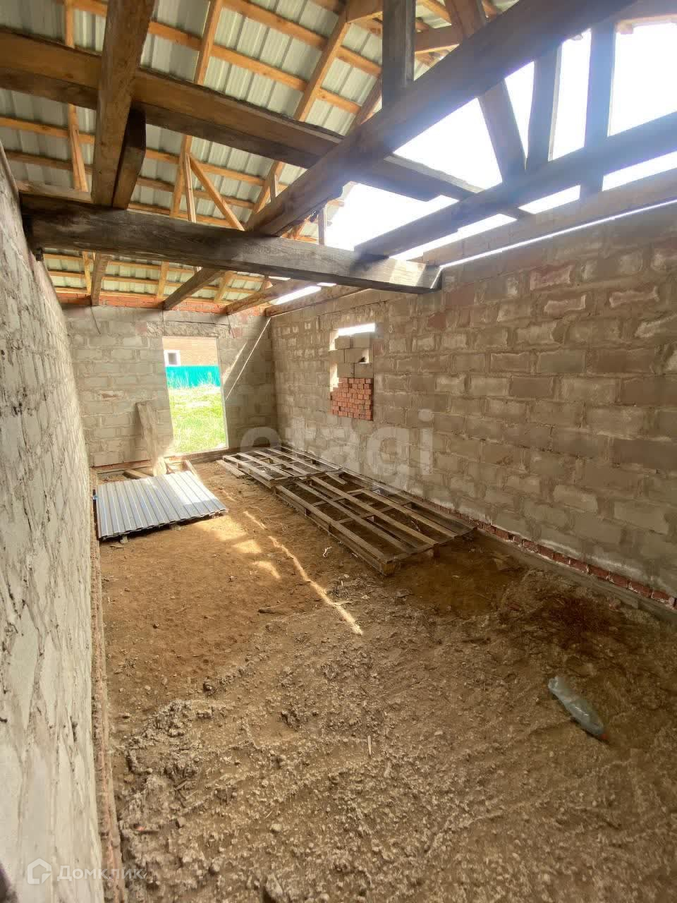 Продаётся ровный земельный участок в Кабаково с большим недостроенным гаражом и летней кухней. Гараж с кухней под одной крышей.