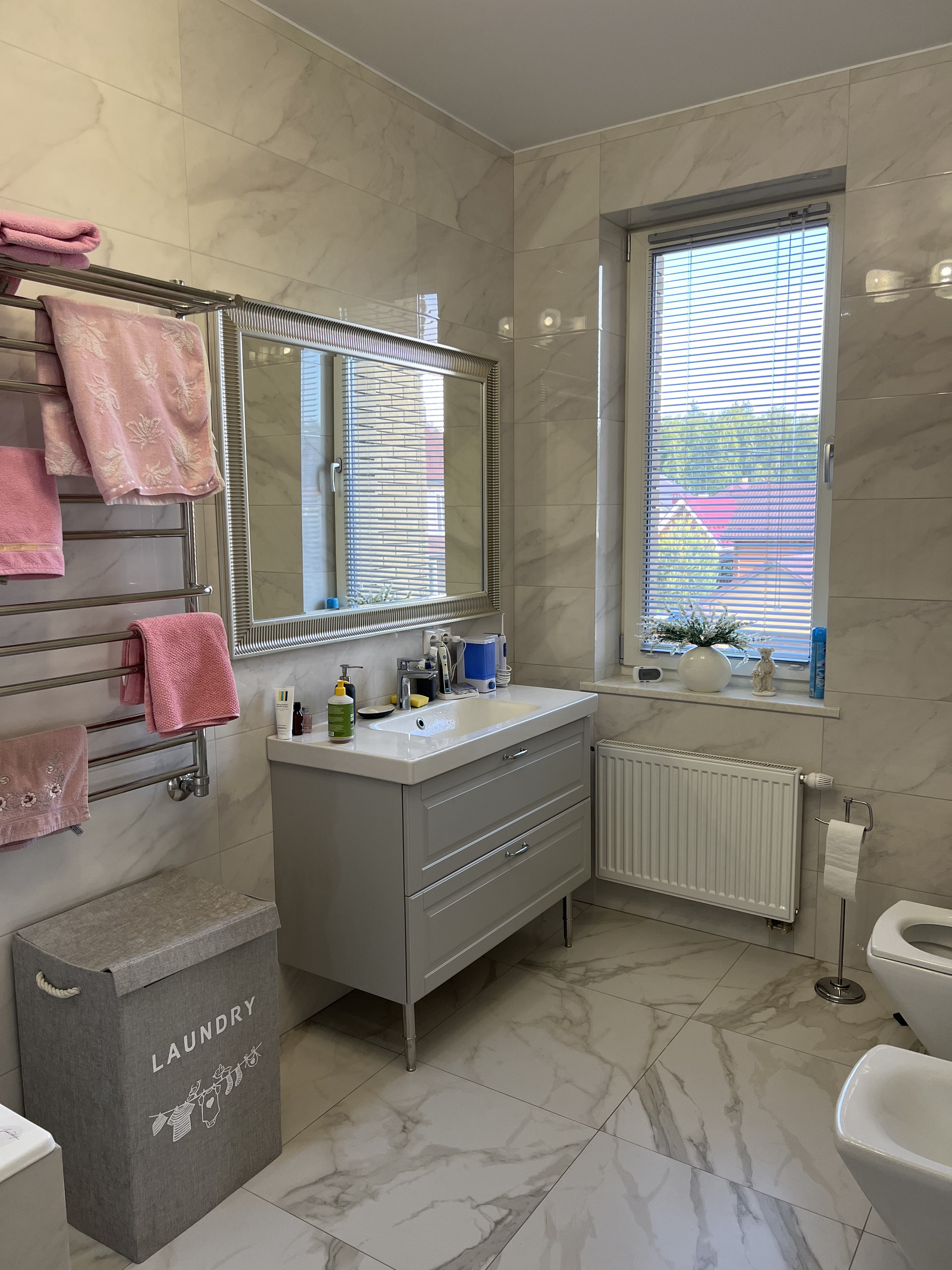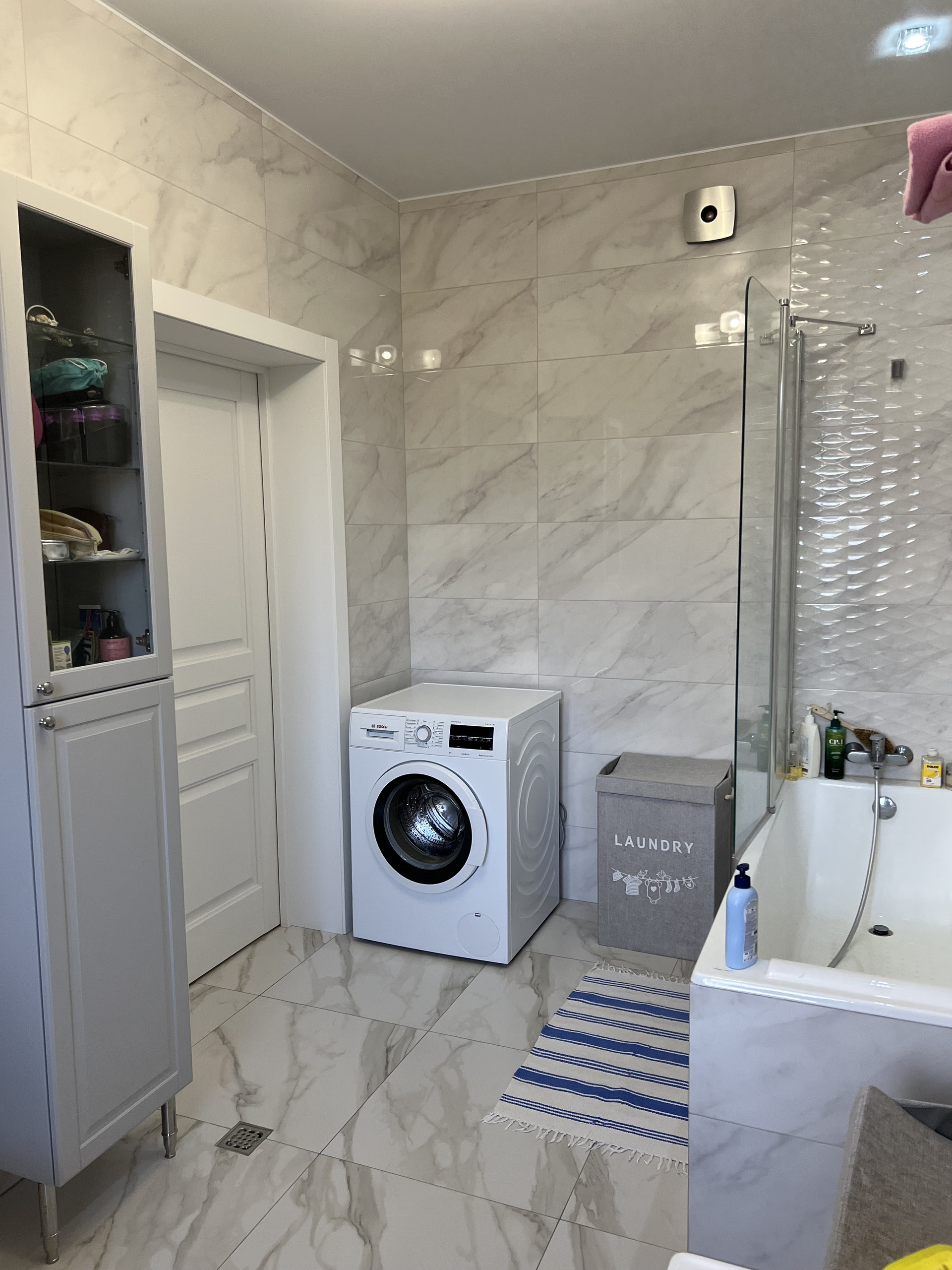 Первый этаж дома и баня имеют теплые полы с зональным регулированием по помещениям, сделана система рециркуляции горячей воды.