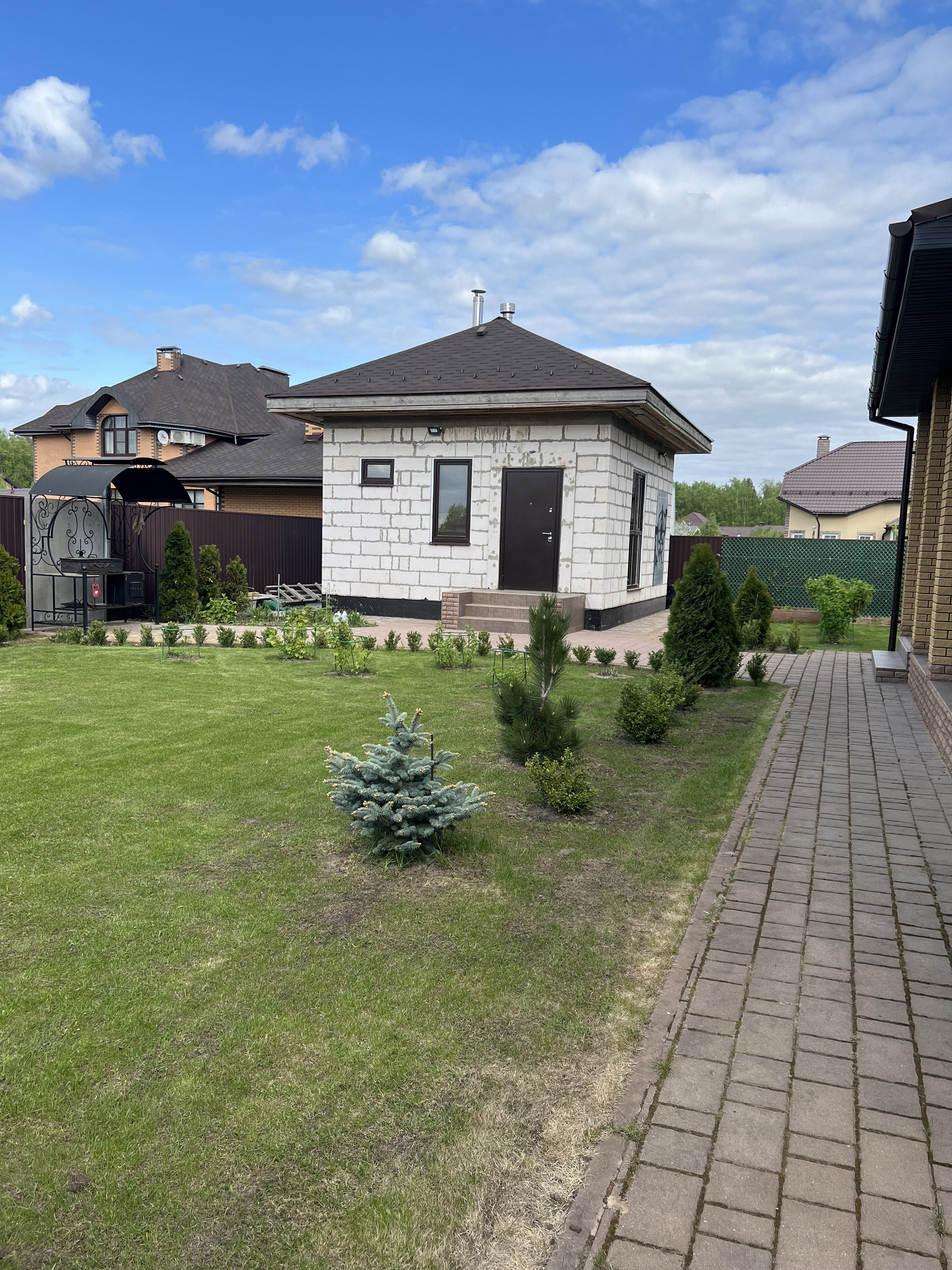 Баня - гостей вод так же построена из газосиликатного блока. Площадь 31 м2. Внутренняя отделка деревом с учетом всех банных особенностей. Полностью готова к использованию.
