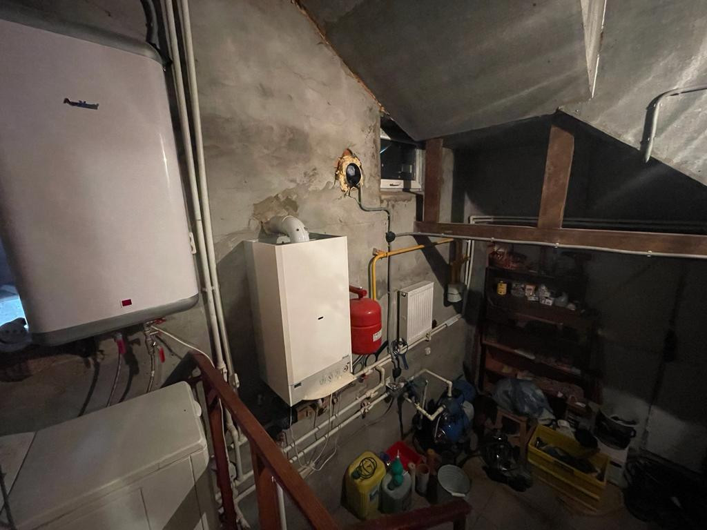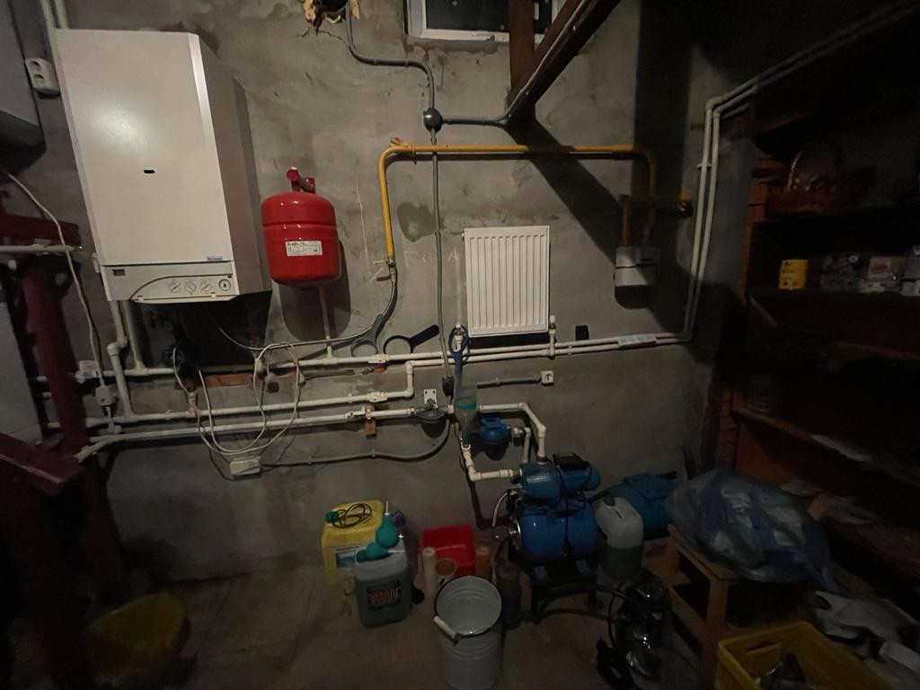 На первом этаже дома 78,8 кв м располагаются прихожая,просторная гостинная, зона кухни ,спальная комната ,ванная комната с выделенной зонной для сауны ,а так же вход в отапливаемый гараж с выходом на улицу,в гараже котельная (газовый котел,бойлер и насосная станция.Газ подведён, вода-колодец, канализация -септик. Электричество - 5 кВ.