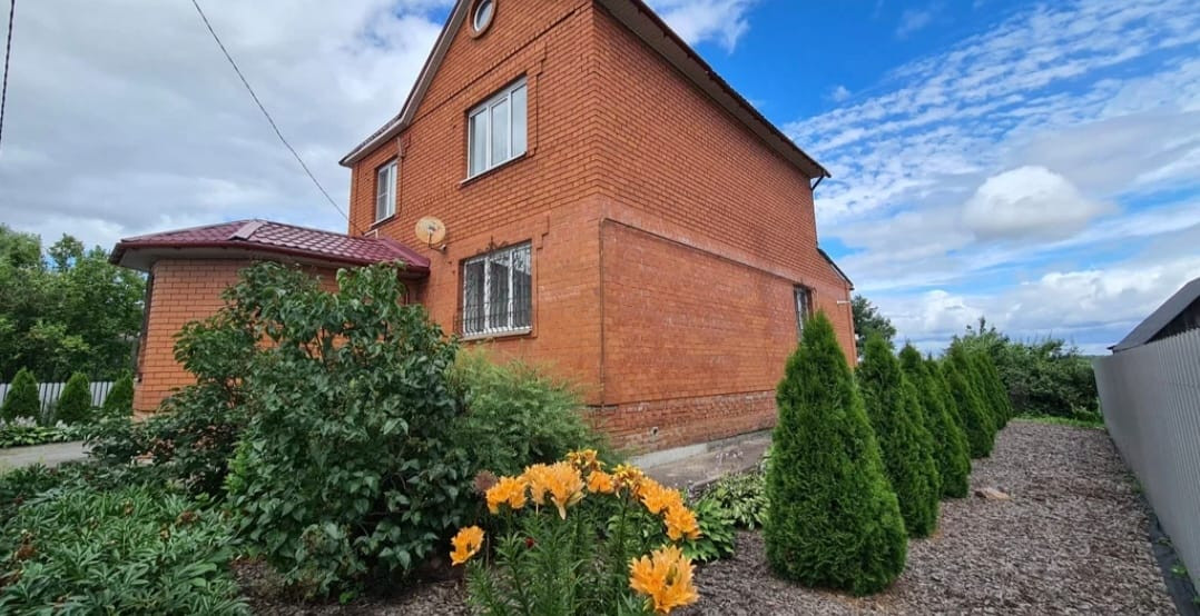 Участок  земли 39 соток земли. Дом кирпичный 2-х этажный. Два сан. узла и 5 комнат, потолки гипсокартон, в санузлах натяжные, новый котел, на газ стоит счетчик. Теплые полы (от электричества) на 1 этаже, над гаражом и в санузлах. Высота потолков 2,70, есть подвал высотой 1,90. Электричество круглый год,  газ центральный,  канализация -  септик,  вода -  скважина.