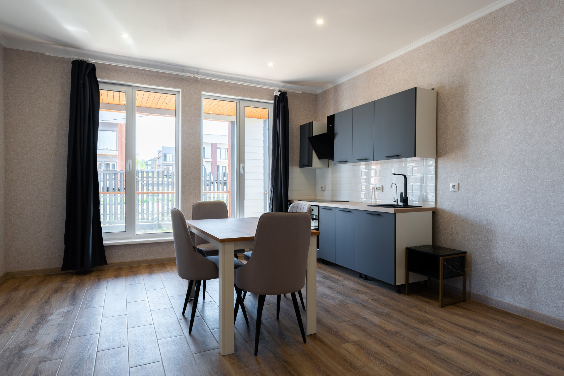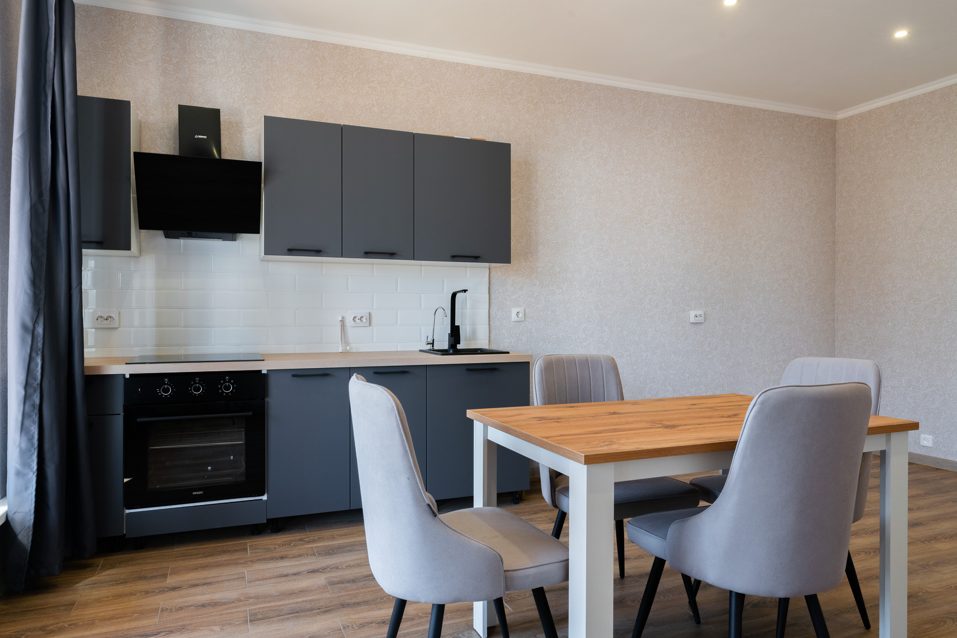 • полностью оборудованная кухня со встроенной варочной панелью и встроенным духовым шкафом